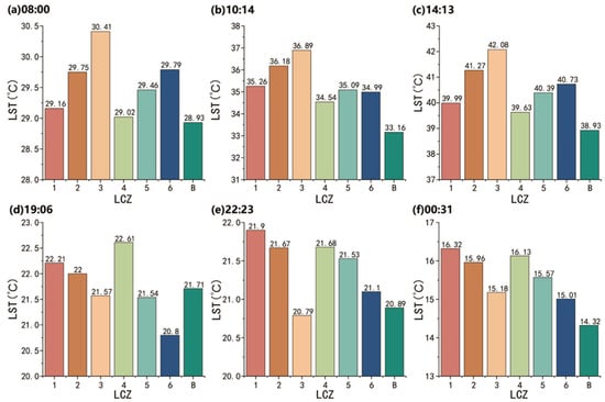 3.2. Characteristics of Diurnal Variations in LST Across LCZ