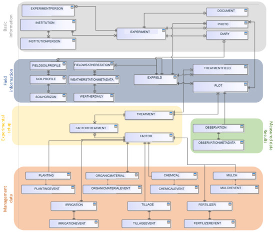 - van Evert, F.K.; Spaans, E.J.A.; Krieger, S.D.; Carlis, J.V.; Baker, J.M. A Database for Agroecological Research Data: I. Data Model. Agron. J. 1999, 91, 54–62. [Google Scholar] [CrossRef]