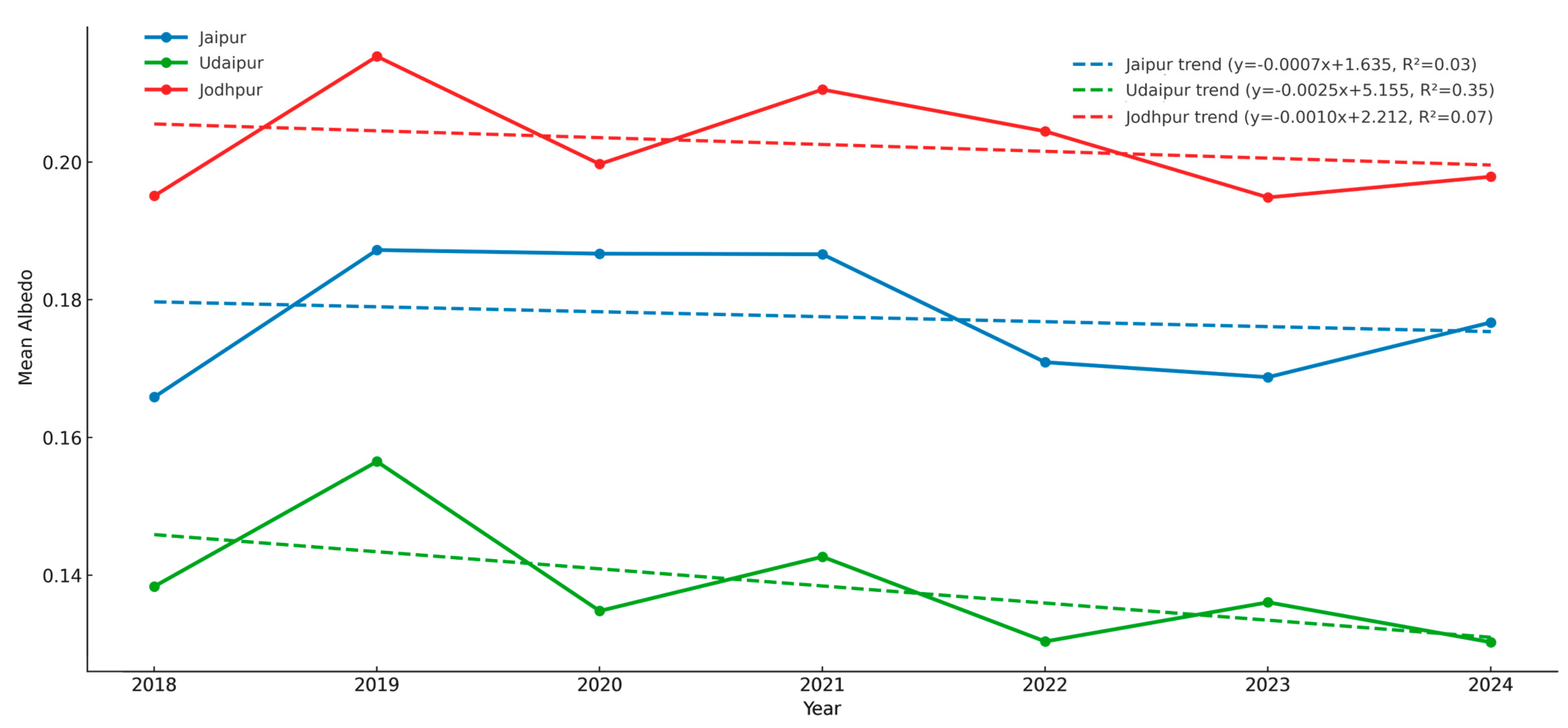 3.3.2. Albedo Dynamics in Semi-Arid Heritage Cities