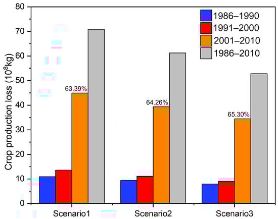 This study is limited to the 1986–2010 period, which prevents it from capturing the latest dynamics of land conversion and population growth. Thus, future research should first incorporate updated post-2010 data to address this temporal gap. Future research should also conduct micro-scale analyses with high-resolution data, and integrate agricultural technology and policy factors into crop loss assessments to enhance the study’s depth and practical relevance.