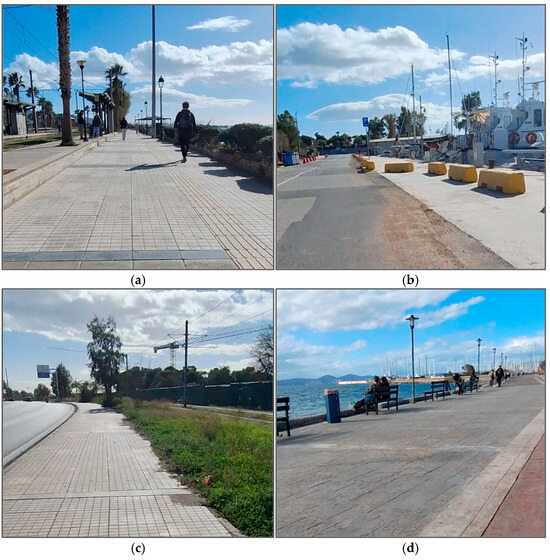 The second type includes pedestrian-only coastal promenades in Palaio Faliro and Alimos, totaling roughly 800 m (Figure 10).