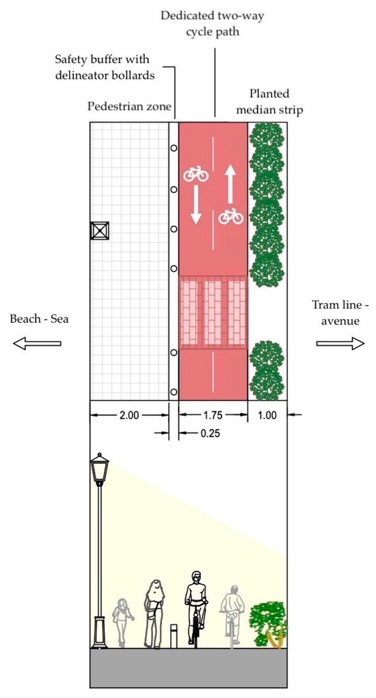 Plan view and section of a random location featuring a dedicated two-way cycle track.