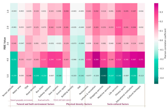 4.3. Spatial Correlation Between Residents’ Sentiments of PD and Physical Density Factors