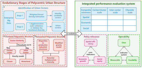The remainder of this study is structured as follows: Section 2 presents the theoretical framework; Section 3 introduces the study area, data, and methodology; Section 4 traces the co-evolution of the polycentric structure and urban performance; and Section 5 and Section 6 present the discussion and conclusions.