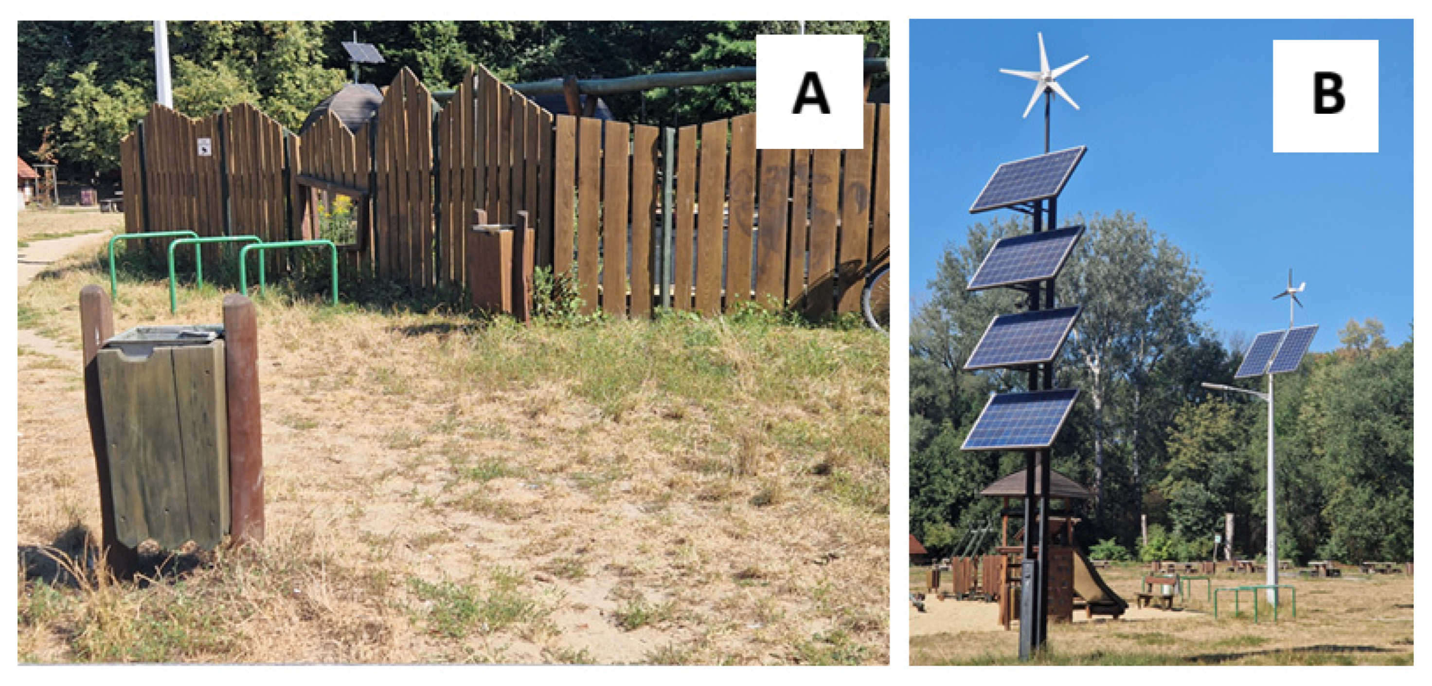 However, due to the long-term effect of oxygen production from mature trees, the first priority should be to increase the share of ground cover and shrub vegetation, which will more quickly achieve the biomass needed for oxygen production. It is also suggested to introduce lighting that uses renewable energy sources (e.g., wind turbines or solar panels), which has been successfully implemented in Warsaw green spaces, for example, in playgrounds (