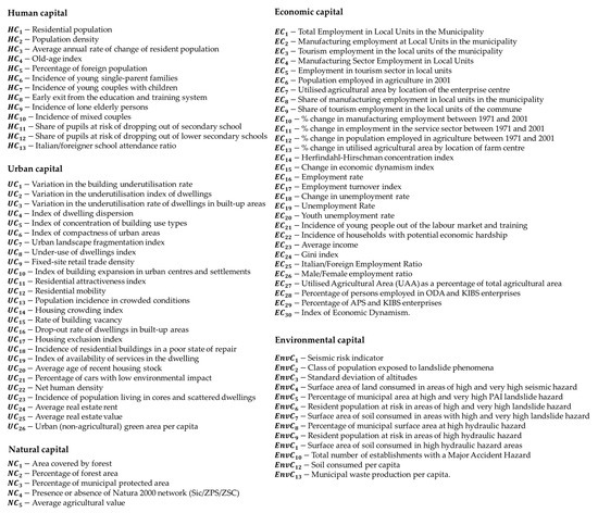 - Governo Italiano, Presidenza del Consiglio del Consiglio dei Ministri. Urban Index. Indicatori per le Politiche Urbane. Available online: https://www.pnmetroplus.it/wp-content/uploads/2017/05/presentazione_urbanindex_step7.pdf (accessed on 13 April 2022).