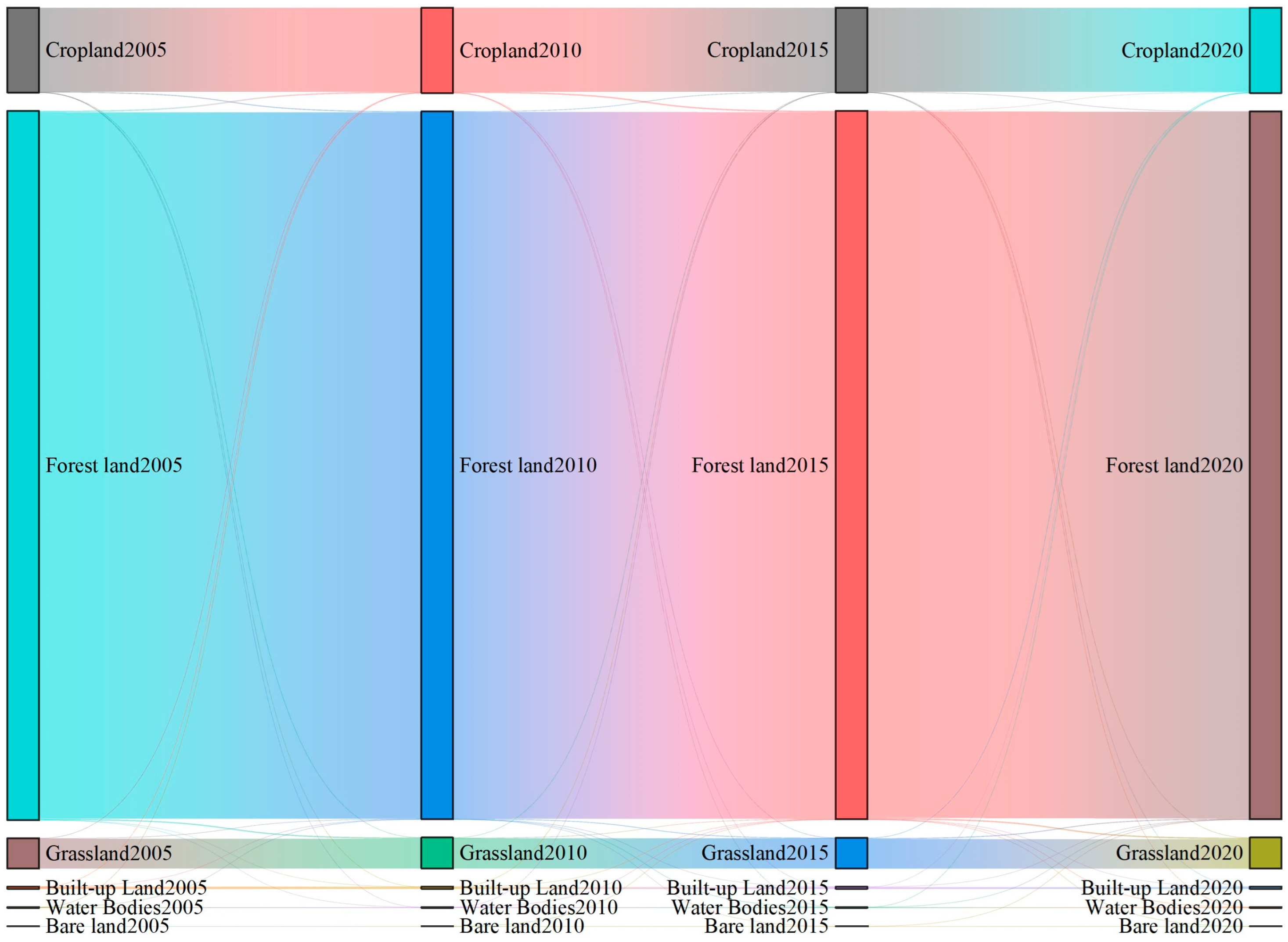 | Land Use Type | 2005 | Variation | 2010 | Variation | 2015 | Variation | 2020 |
