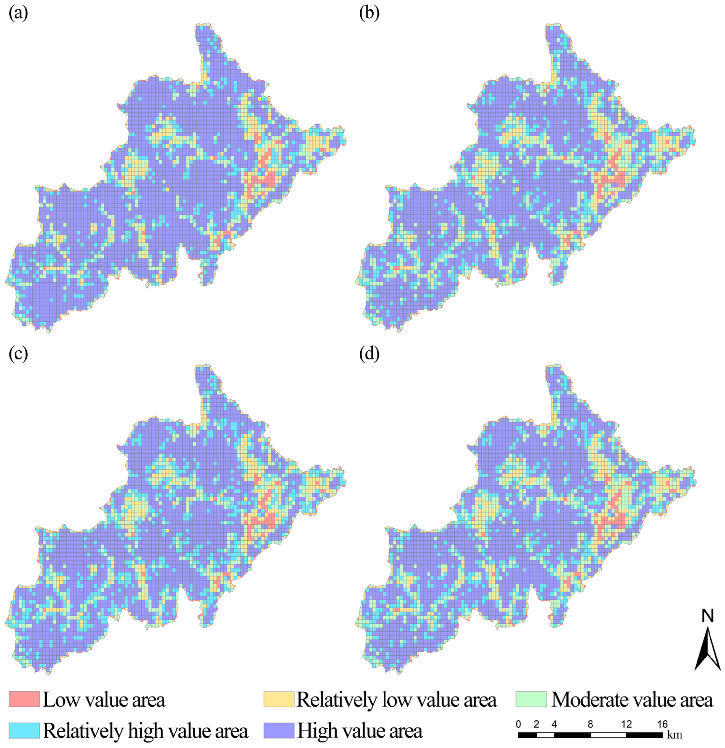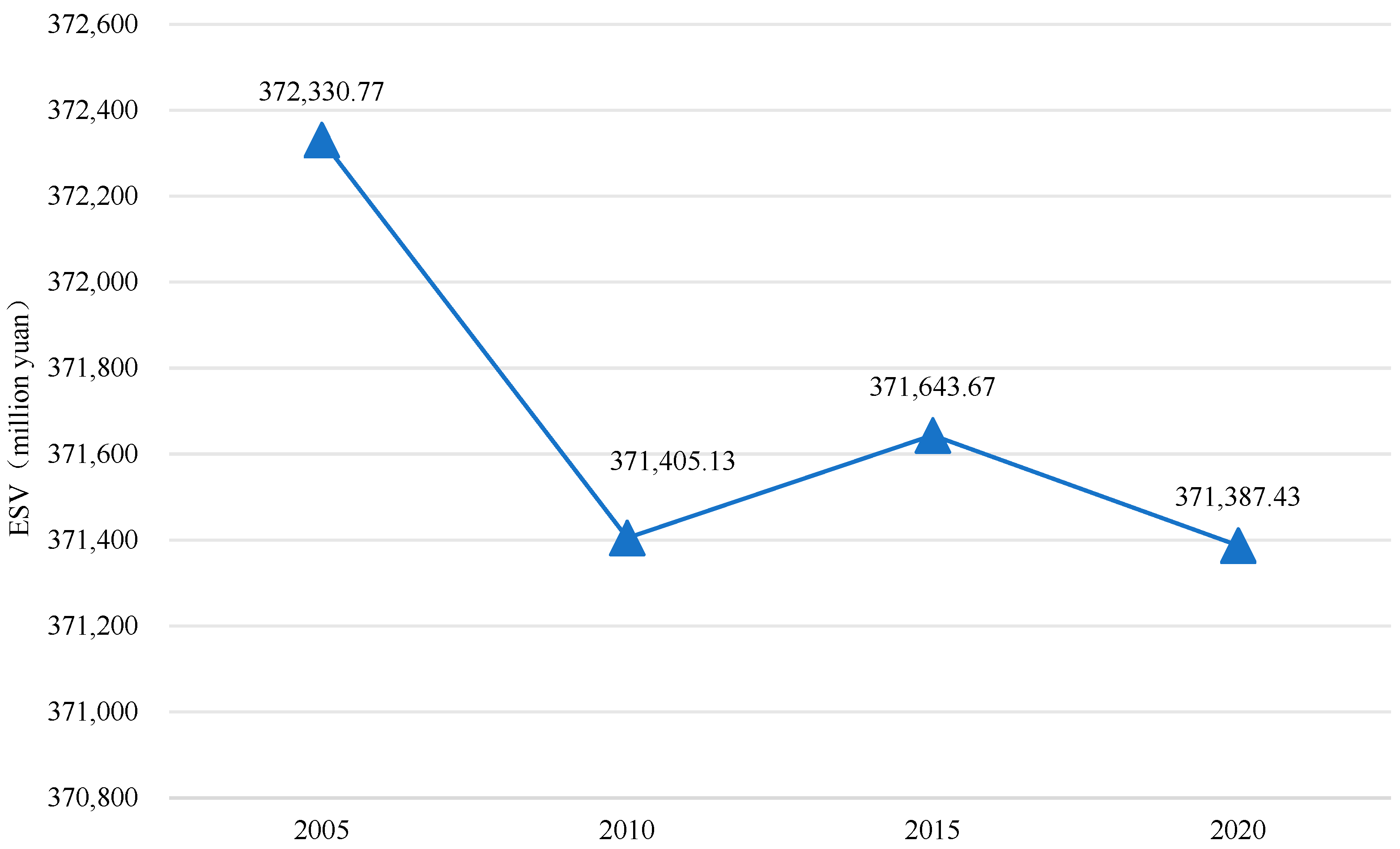 3.1. Spatiotemporal Variation in Ecosystem Service Values