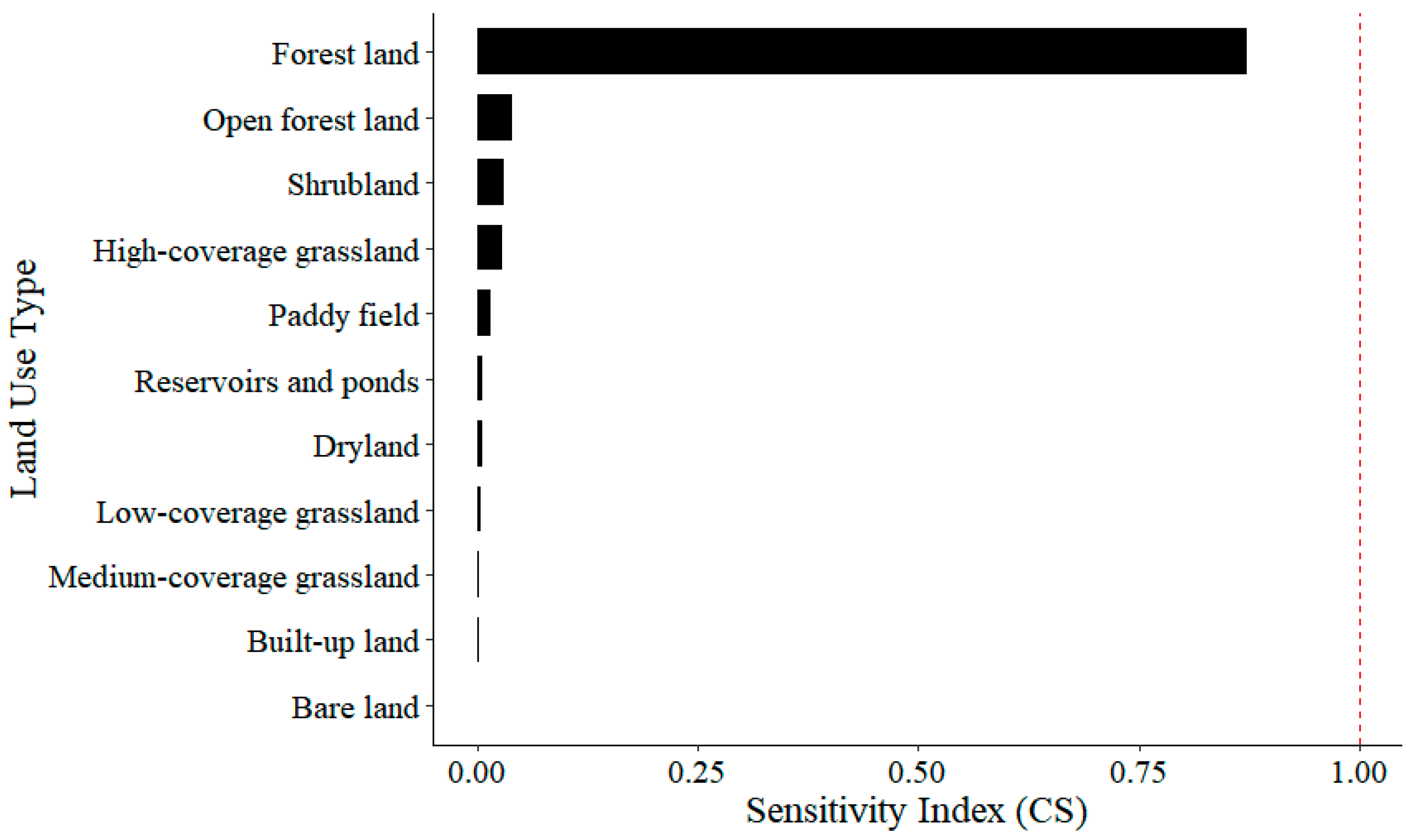 | Built-up land | −333.71 | 0.70 | −333.01 | 1.96 | −331.05 | 0.84 | −330.21 |