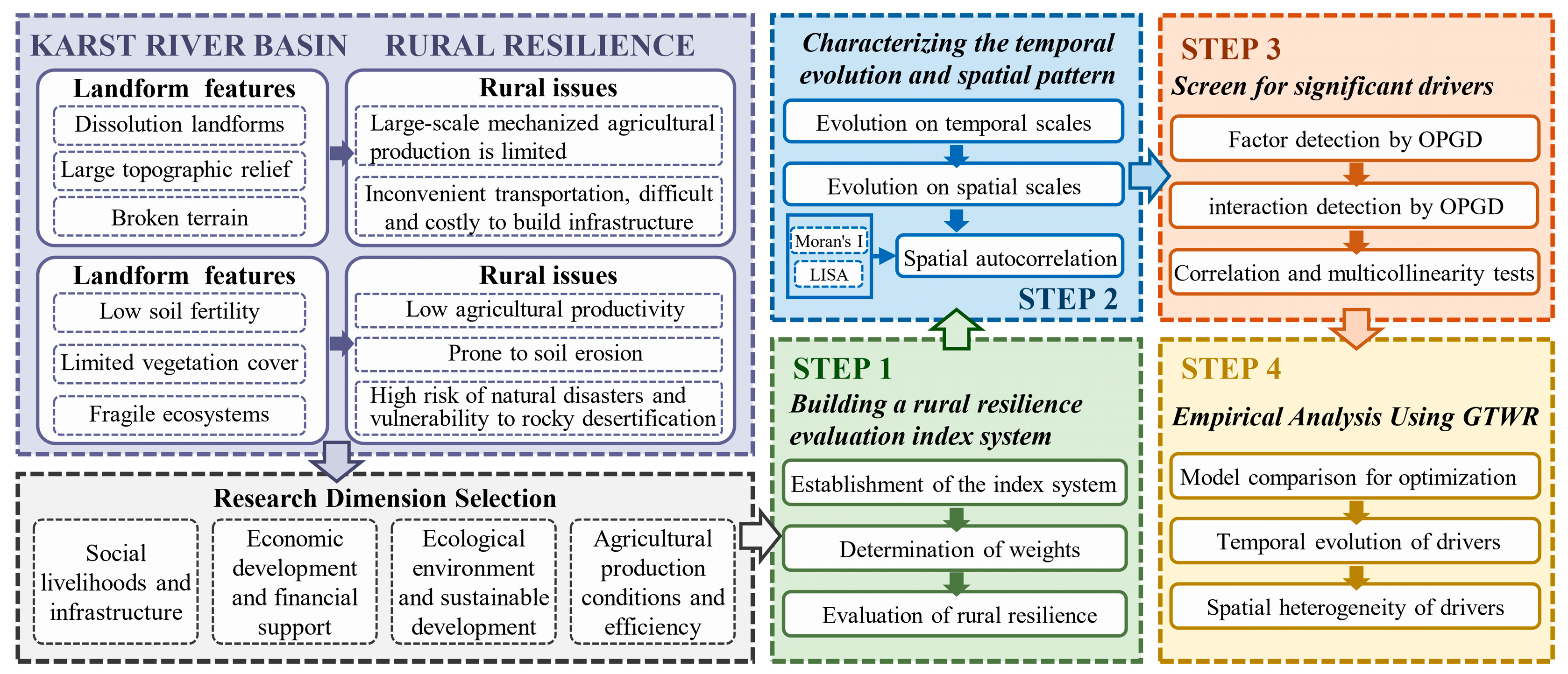 Chicago/Turabian StyleRong, Ke, Yuqi Zhao, Yiqin Bao, and Yafang Yu. 2026. "Spatiotemporal Heterogeneity and Driving Mechanisms of Rural Resilience in a Karst River Basin: A Case Study of the Wujiang River Basin, China" Land 15, no. 1: 109. https://doi.org/10.3390/land15010109