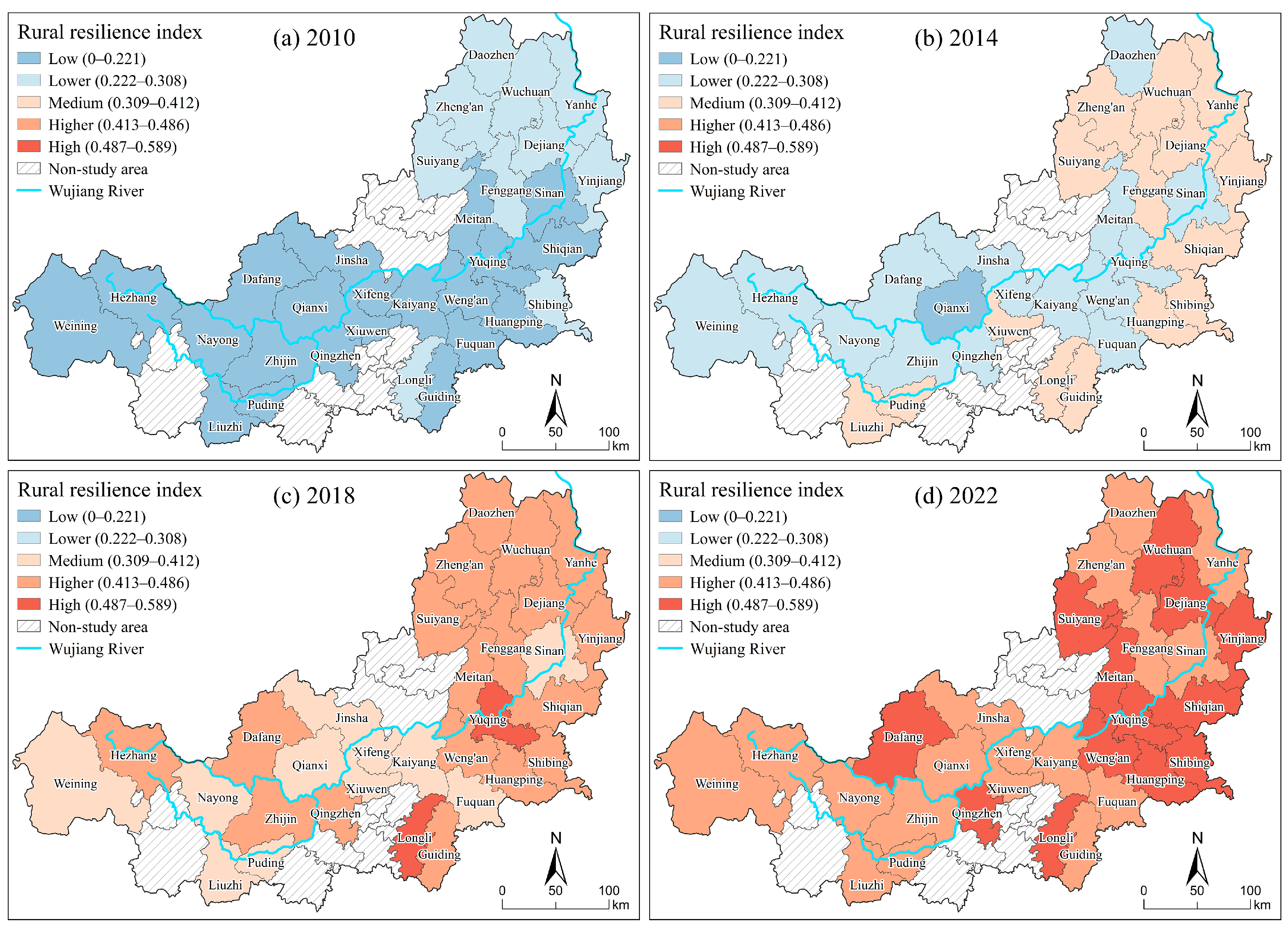 APA StyleRong, K., Zhao, Y., Bao, Y., & Yu, Y. (2026). Spatiotemporal Heterogeneity and Driving Mechanisms of Rural Resilience in a Karst River Basin: A Case Study of the Wujiang River Basin, China. Land, 15(1), 109. https://doi.org/10.3390/land15010109