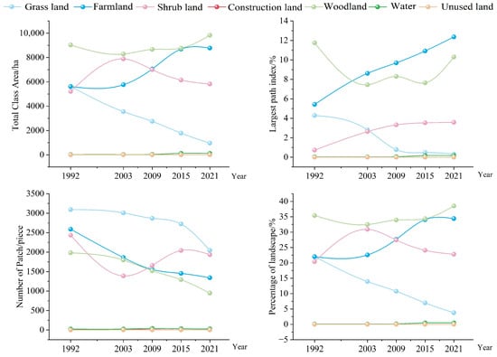 In summary, the landscape pattern of the region has undergone significant changes over the past three decades, mainly characterized by a reduction in grassland, an increase in cropland and shrubland/forestland, and a decrease in landscape heterogeneity. These changes are influenced not only by natural factors but are also closely related to human activities, such as urbanization, agricultural development, and ecological conservation policies.