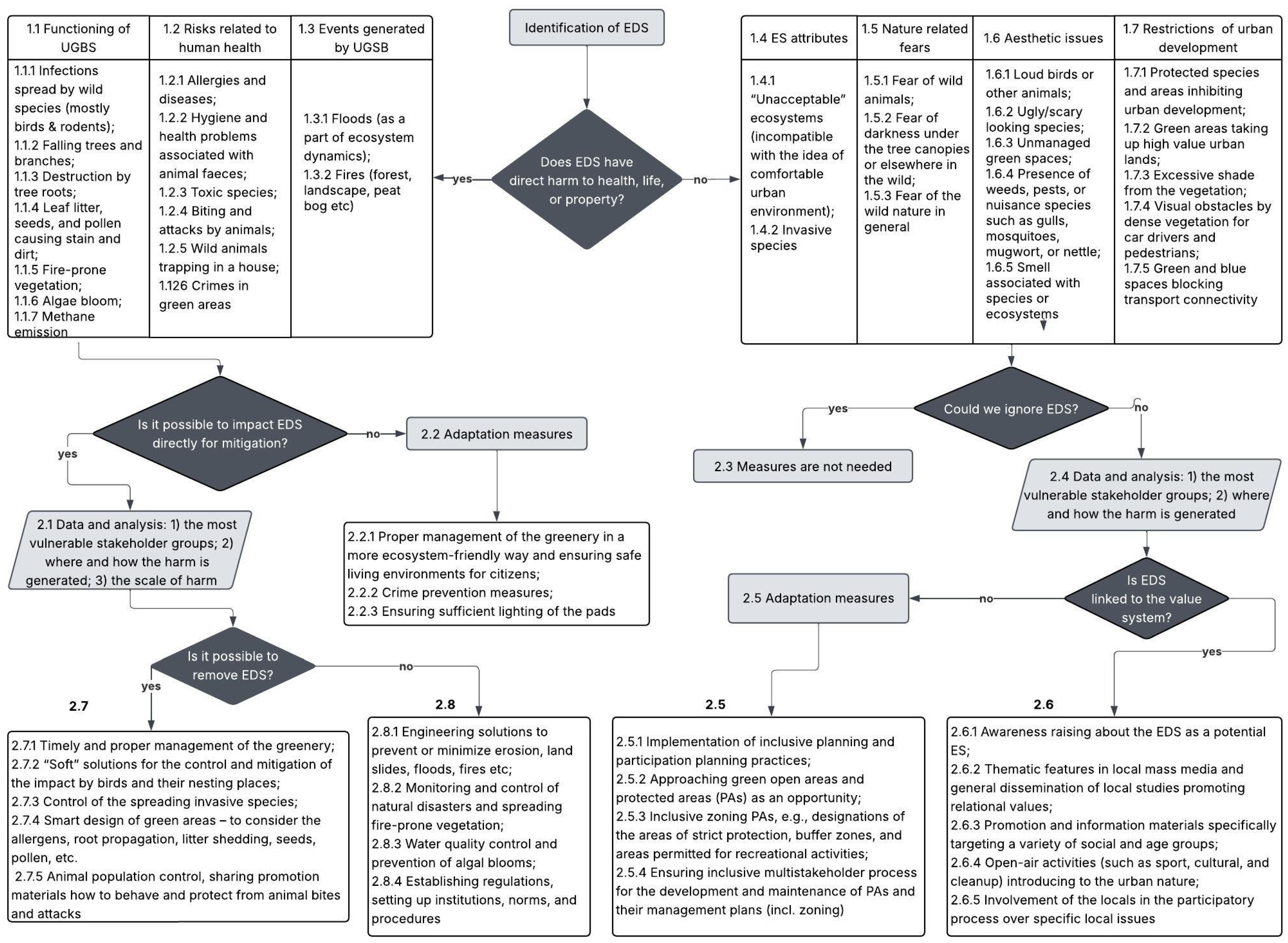 | Outcome (type) | EDS concerns addressed through communication; management pathway follows the decision-making tree; ecosystem/NBS maintained. |