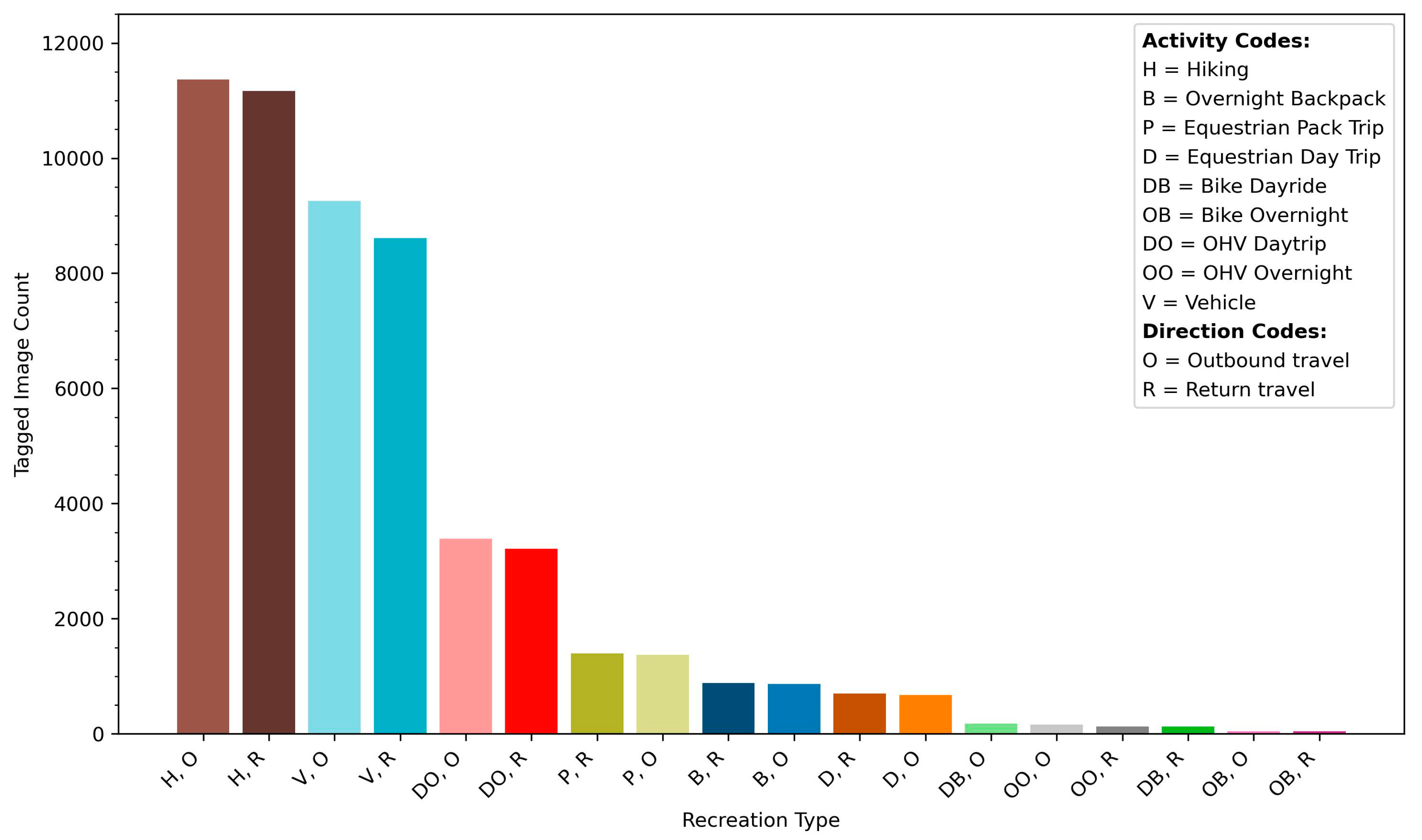 | Hiker | Overnight (e.g., Backpacking) | Outbound | B, O |