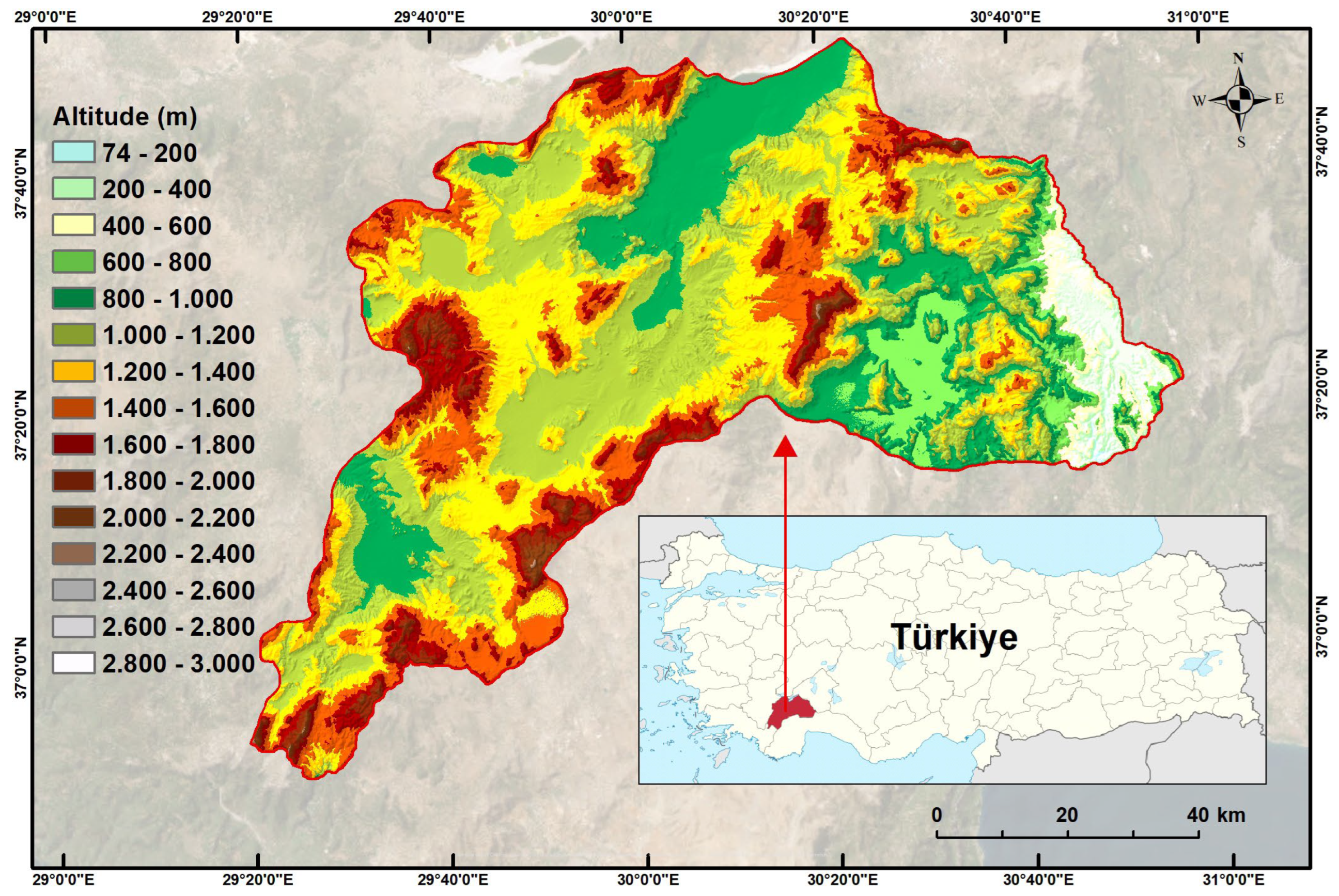 - Burdur İl Tarım ve Orman Müdürlüğü. İklim Durumu ve Nüfus Yapısı. Available online: https://burdur.tarimorman.gov.tr/Sayfalar/Detay.aspx?SayfaId=13 (accessed on 18 November 2025).