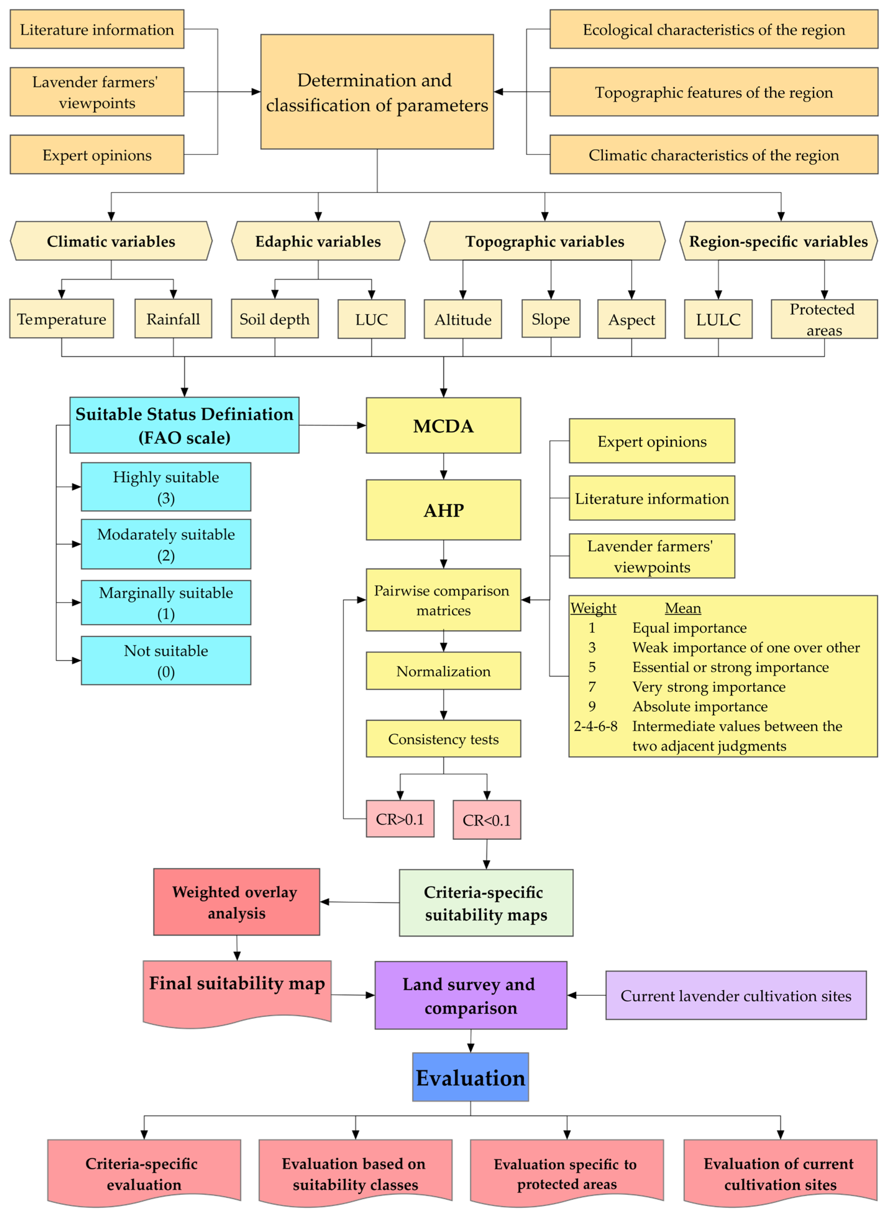 APA StyleSelim, S., Çoşlu, M., Olgun, R., Karakuş, N., Kahraman, E., Sönmez, N. K., & Selim, C. (2026). Lavender as a Catalyst for Rural Development: Identifying Commercially Suitable Cultivation Sites Through Multi-Criteria Decision Analysis. Land, 15(1), 130. https://doi.org/10.3390/land15010130