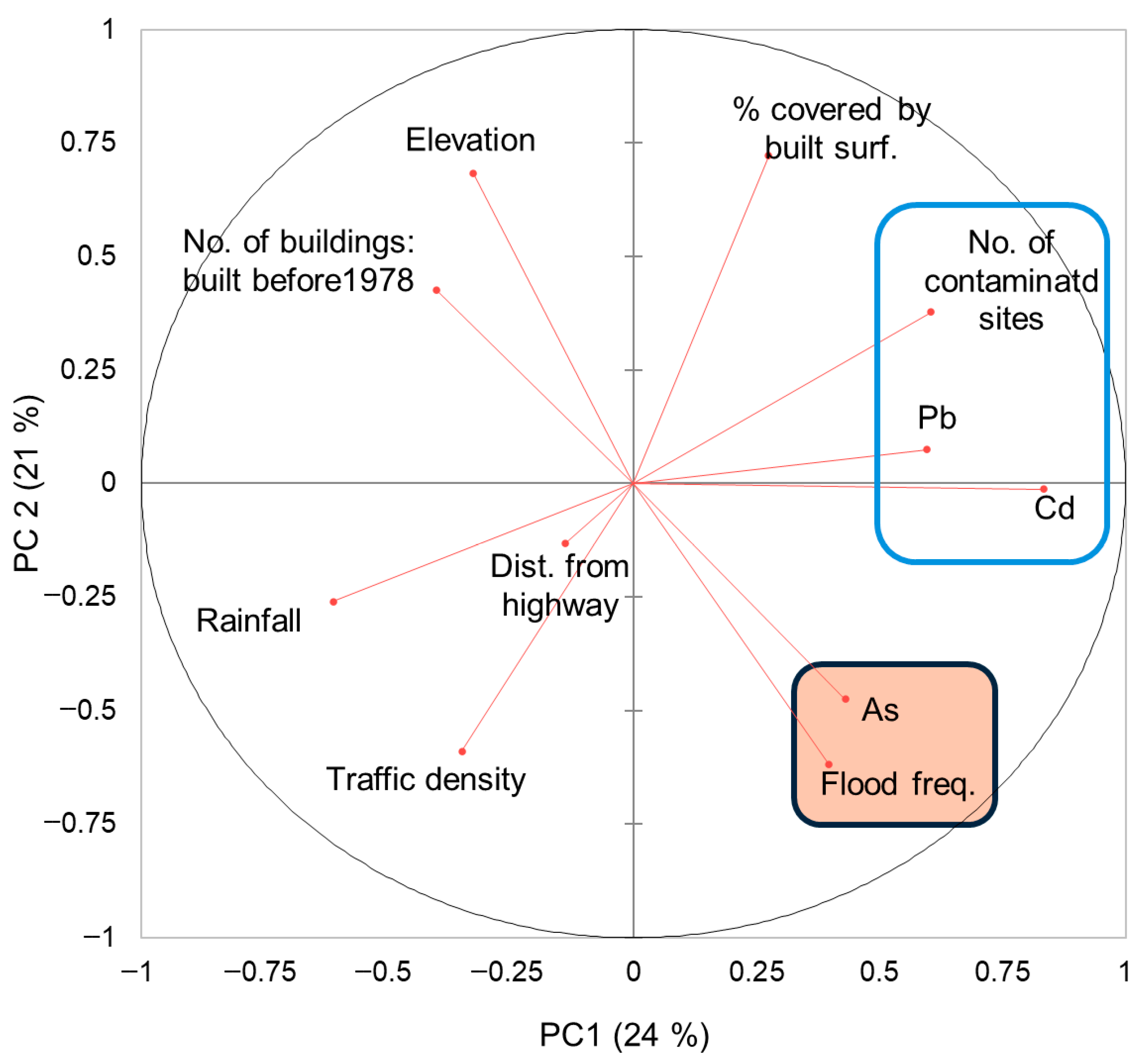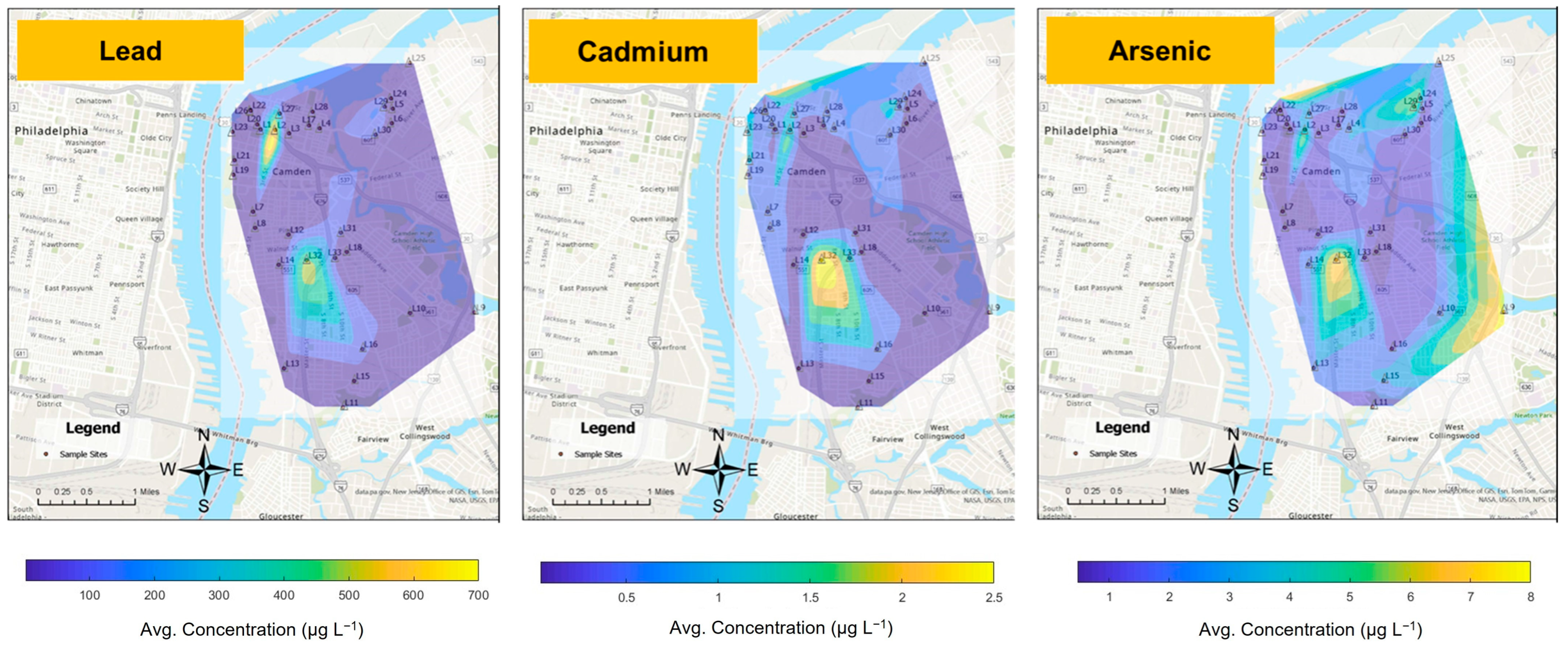 - Caballero-Gómez, H.; White, H.K.; O’Shea, M.J.; Pepino, R.; Howarth, M.; Gieré, R. Spatial analysis and lead-risk assessment of Philadelphia, USA. GeoHealth 2022, 6, e2021GH000519. [Google Scholar] [CrossRef]