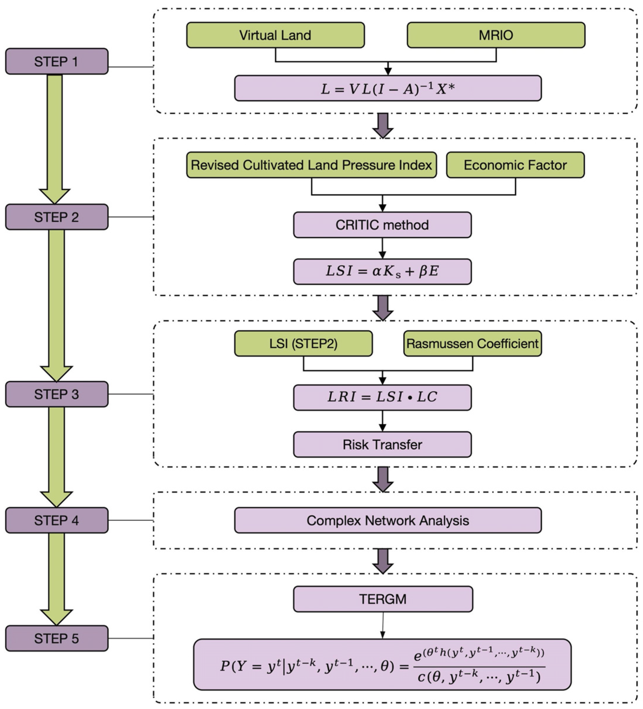 - It was found that a small number of economically developed provinces are in a favorable position while less developed provinces bear more cultivated land pressures and risks, with their evolution tending towards deterioration. As for spatial-temporal dimension, the virtual cultivated land risk transfer network exhibits significant time-dependent effects, manifesting itself in strong path-dependent characteristics and limited path-innovation capabilities. In terms of influencing factors, the impact of economic development is similar to that of industrial structure. Resource endowment solely showed a positive outgoing effect while grain production capacity was only significant in incoming effects. Contrary to common belief, population was actually beneficial for the generation of sending relationships and negatively associated with the generation of receiving effects.