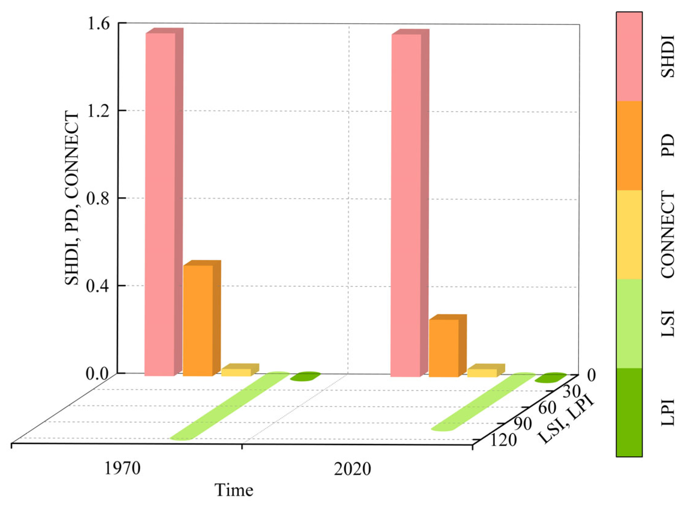 | Landscape Shape Index | LSI | LSI ≥ 1 | Serves as a quantitative measure for assessing the complexity of landscape forms, where higher values correspond to greater shape irregularity |