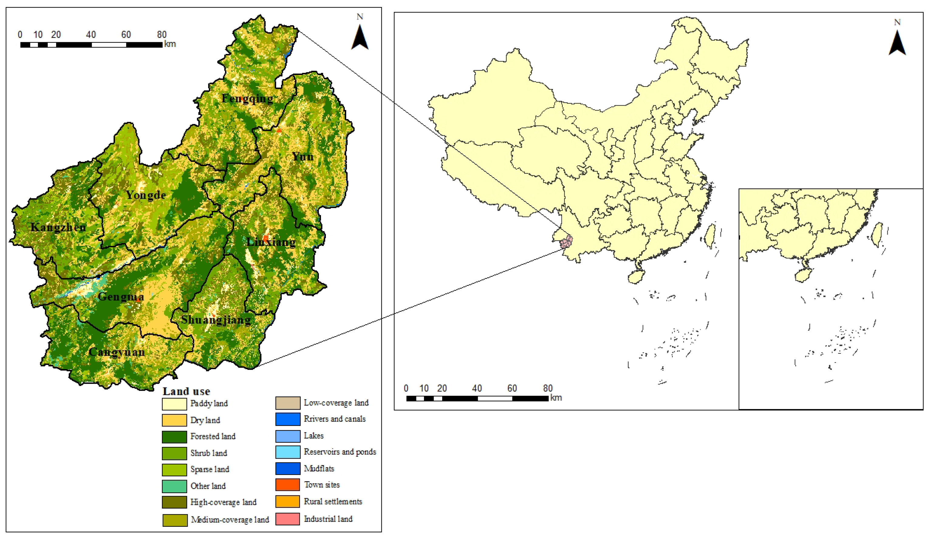 | Semi-production land (3) | Paddy land, dry land, town land, rural settlements | |