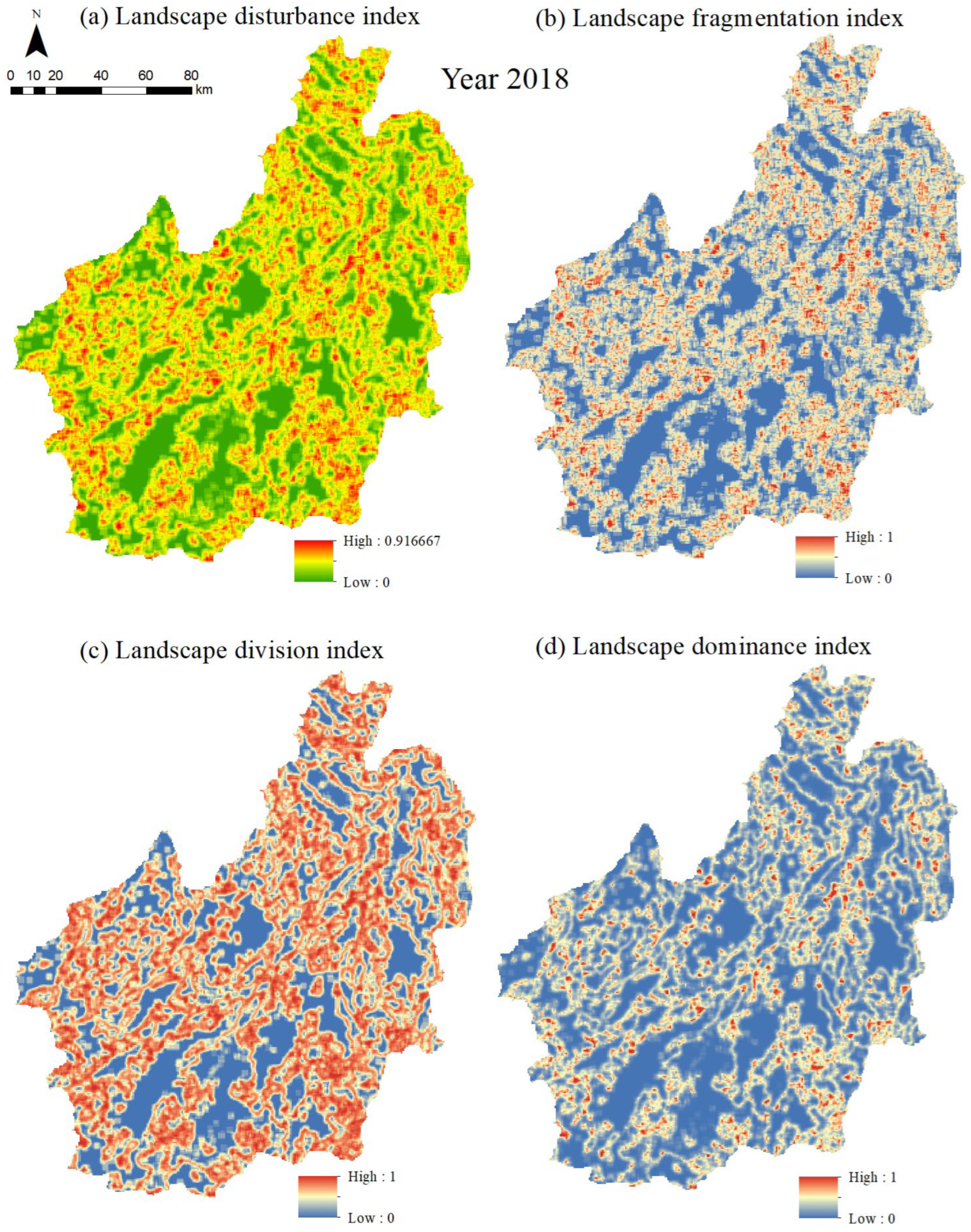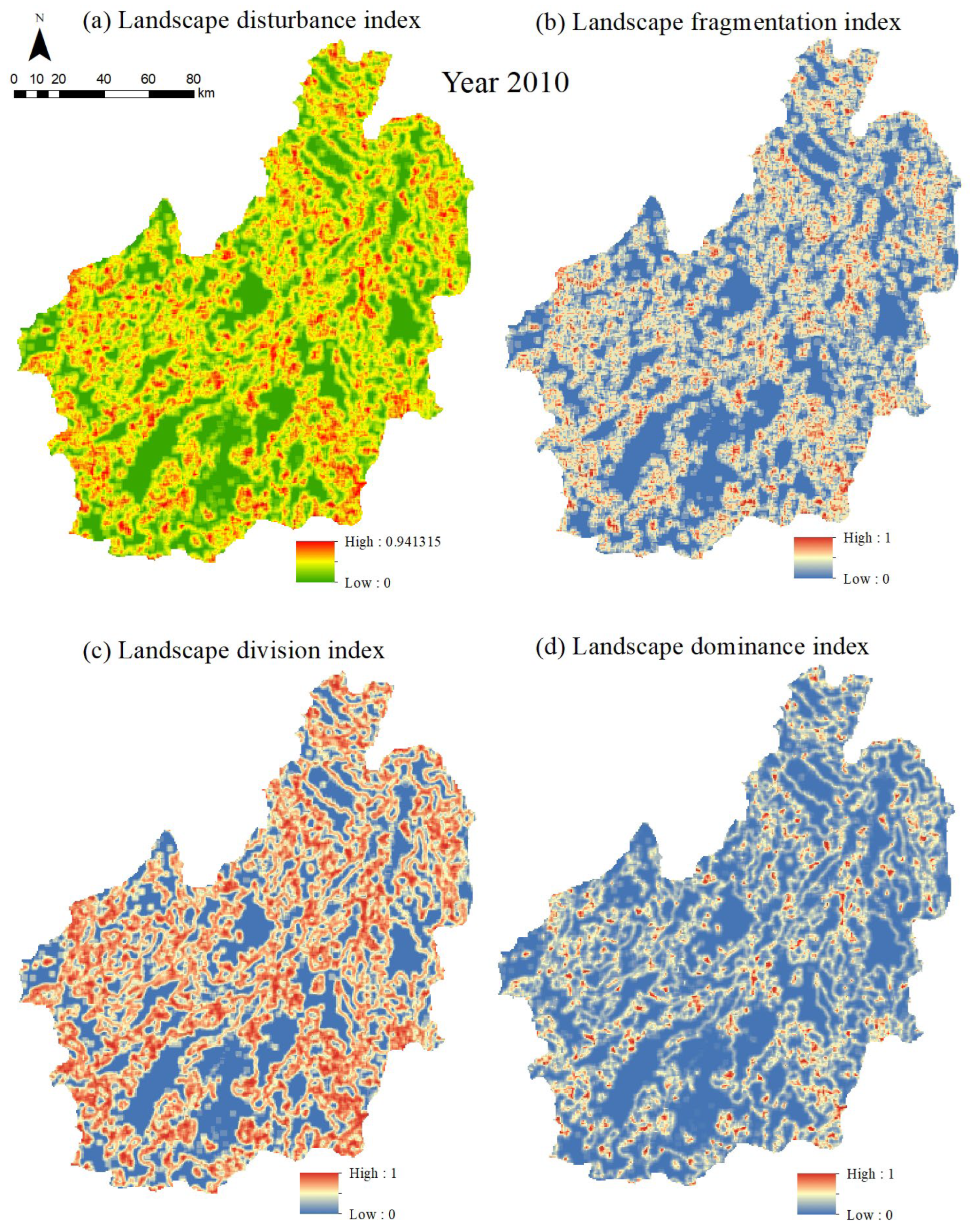 | Landscape disturbance index Ei | a = 0.5, b = 0.3, c = 0.2 |