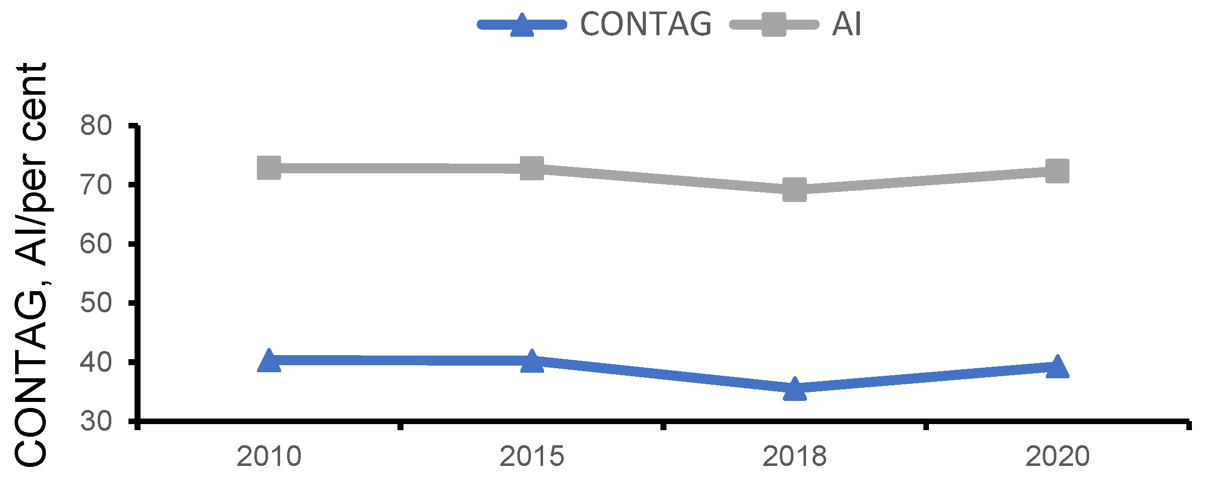 | Aggregation Index AI | gii indicates the number of similar neighboring patches for the corresponding landscape type |