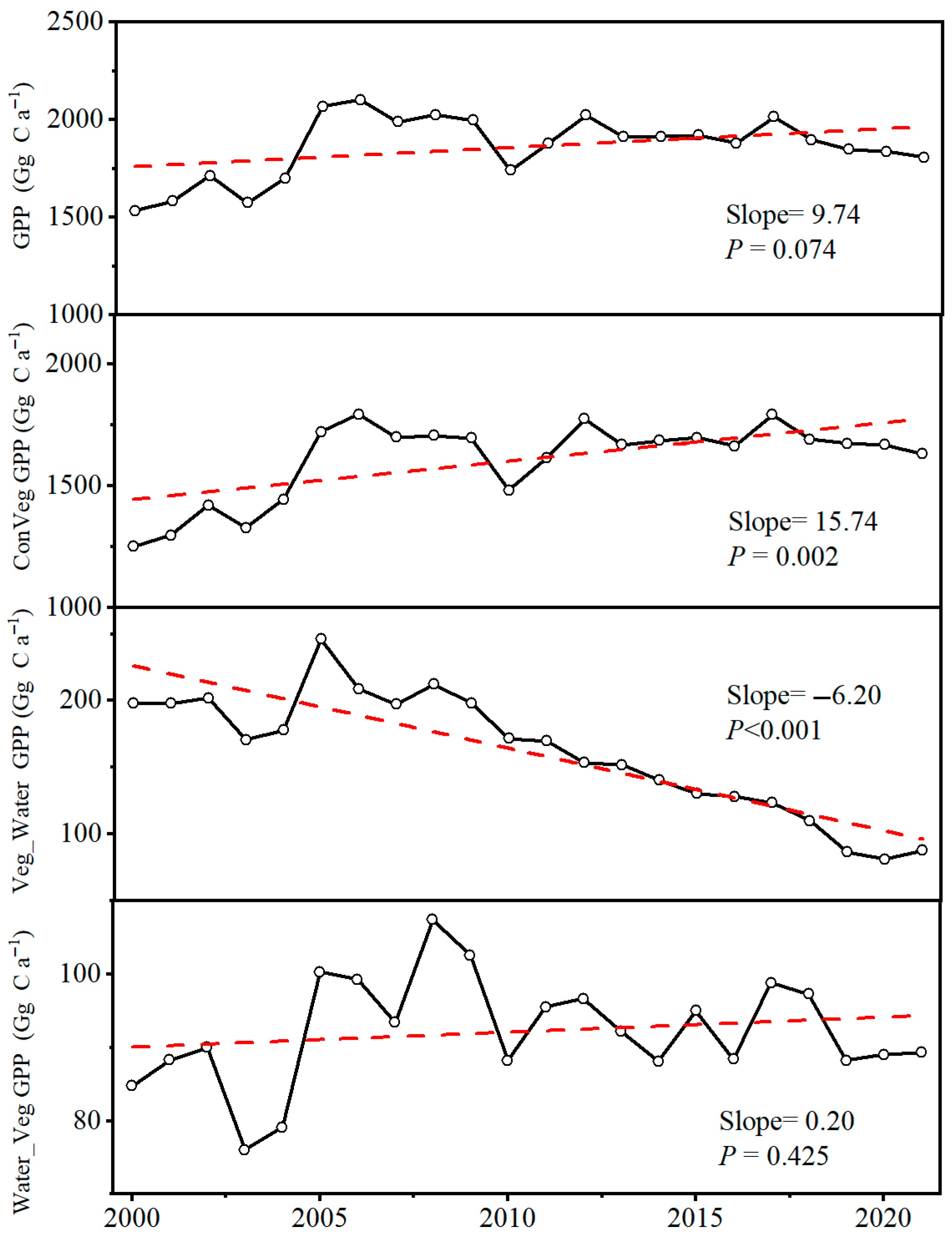3.3. Temporal Trends in GPP