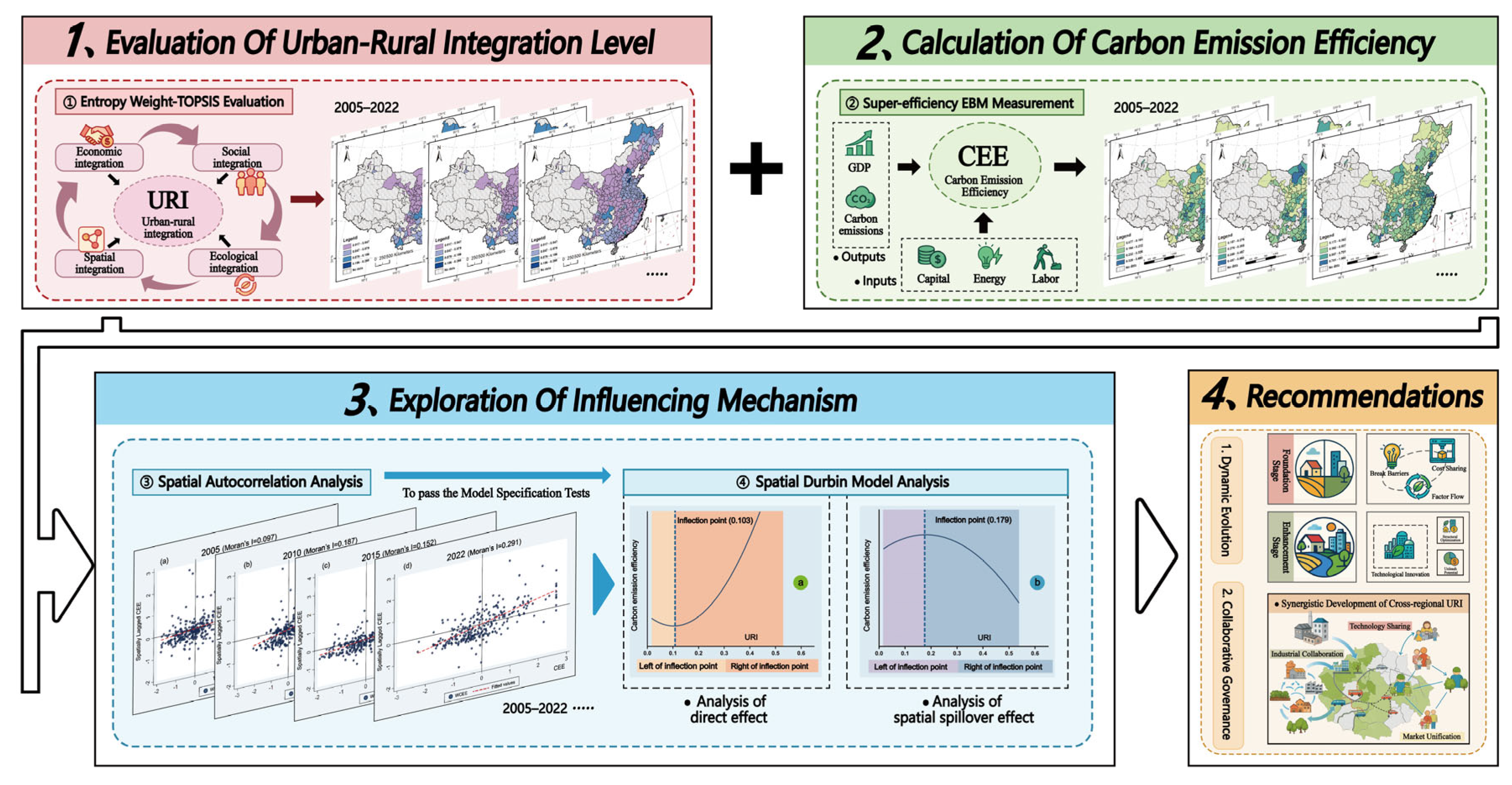 APA StyleJiang, H., Lu, J., Zhang, R., Liu, Y., Li, P., & Xiao, X. (2026). Promoting or Inhibiting? The Nonlinear Impact of Urban–Rural Integration on Carbon Emission Efficiency: Evidence from 283 Chinese Cities. Land, 15(1), 185. https://doi.org/10.3390/land15010185