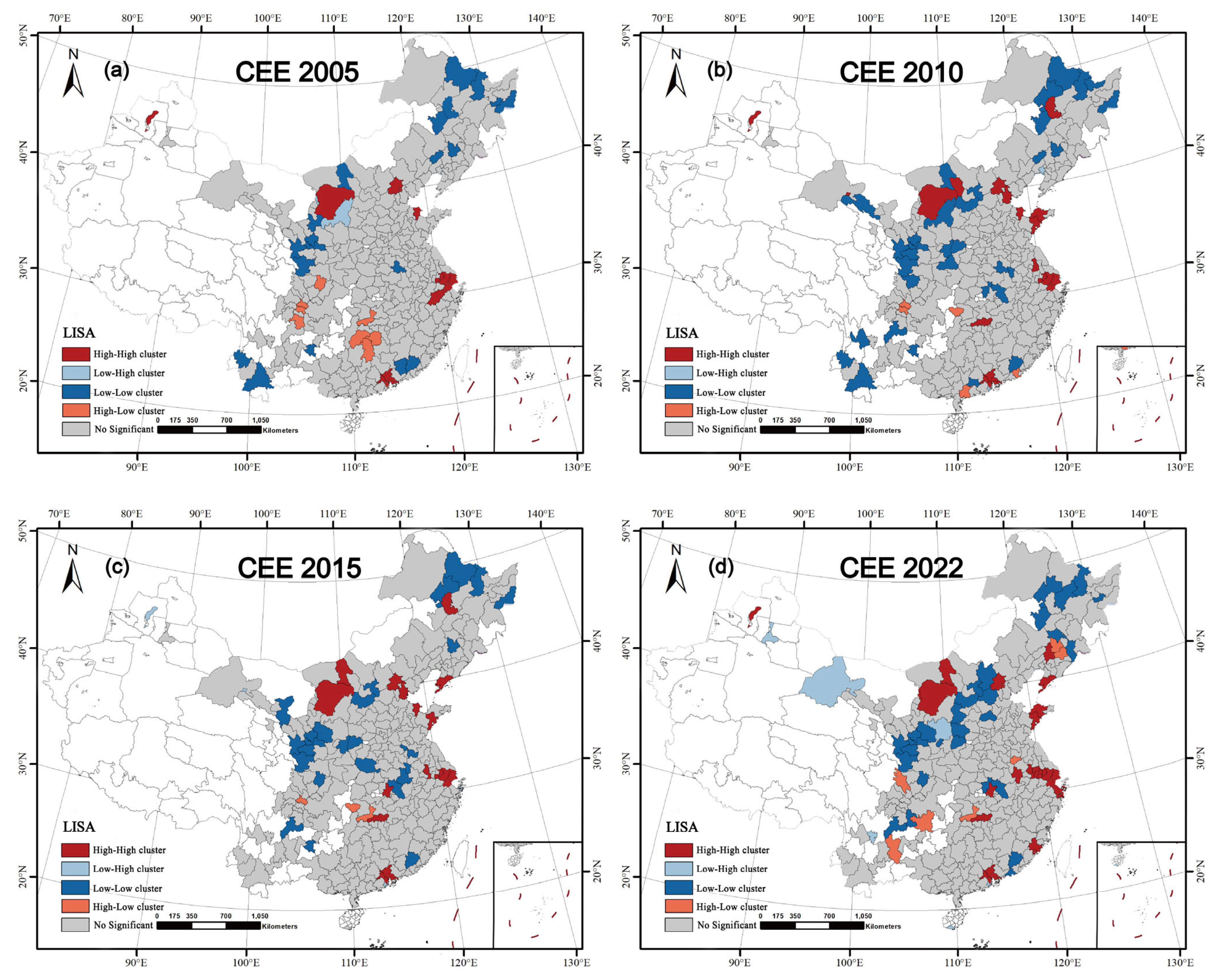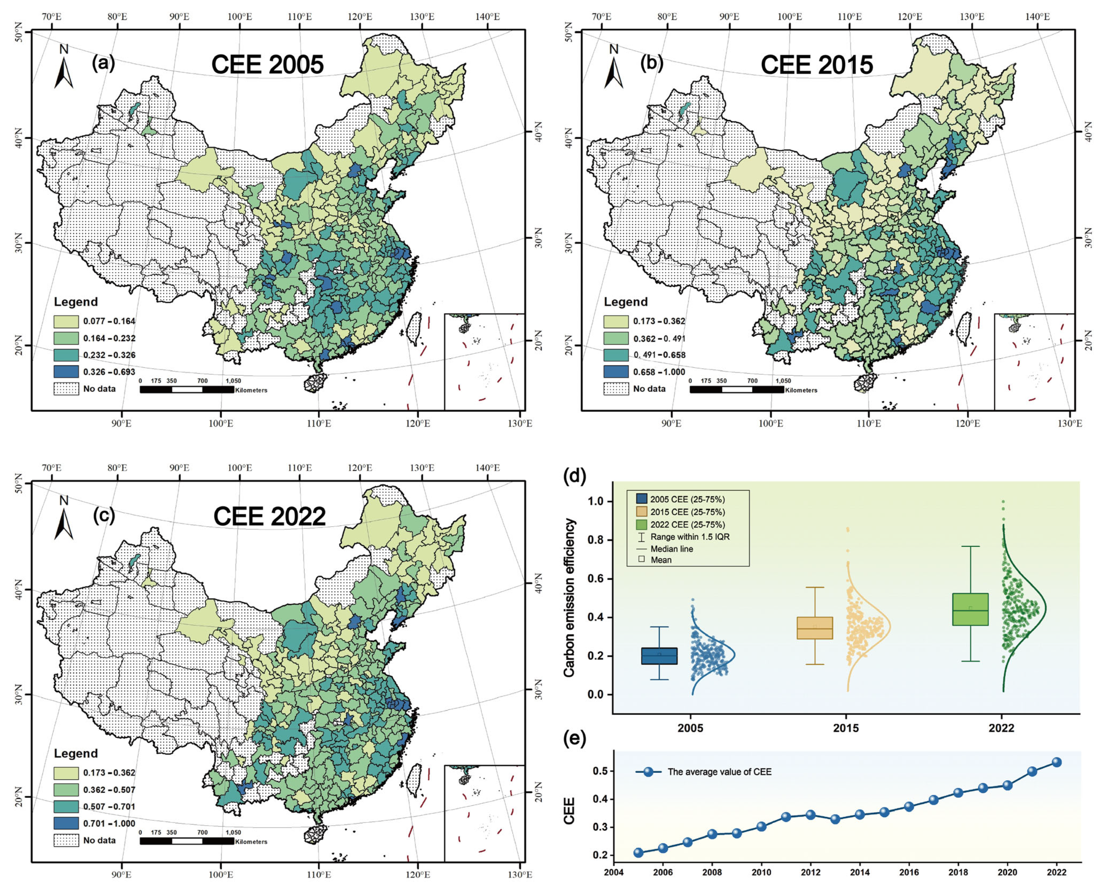 4.2. Spatio-Temporal Pattern of Carbon Emission Efficiency
