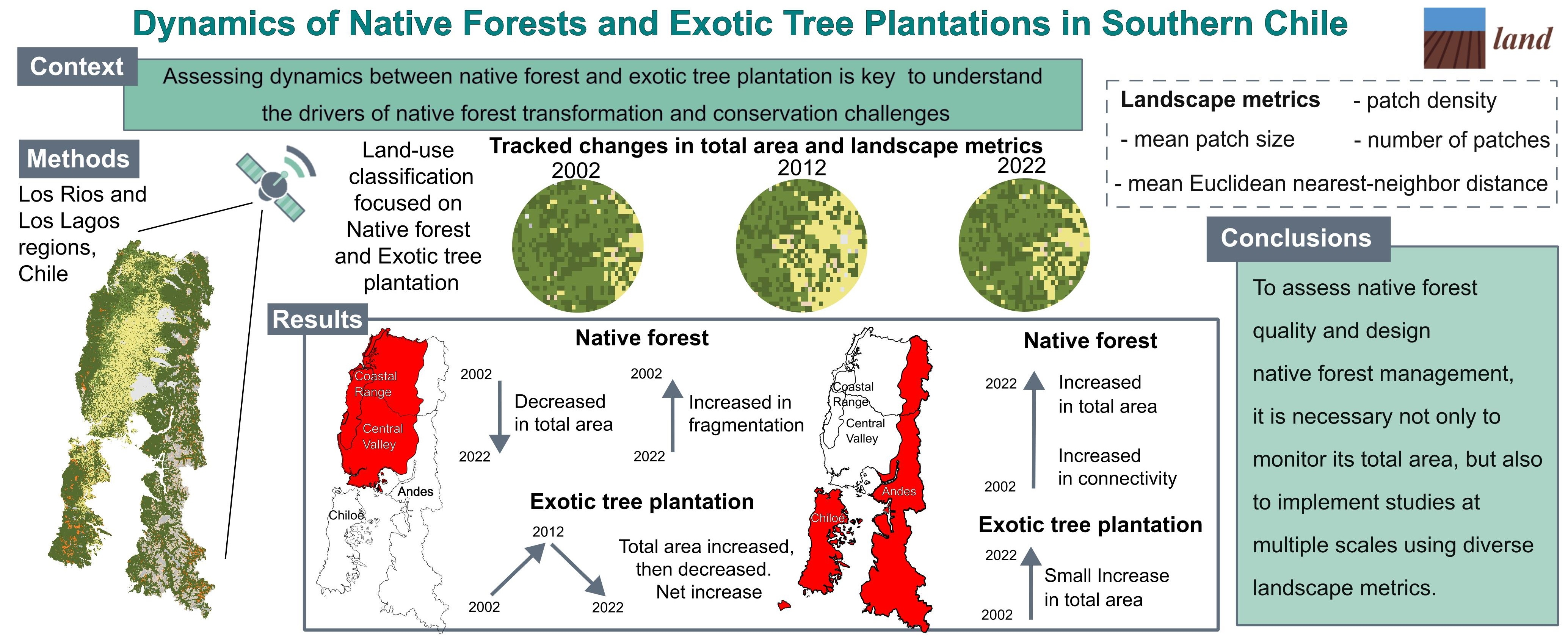 Chicago/Turabian StyleFlores-Ferrer, Alheli, John Gajardo Valenzuela, Claudio Verdugo Reyes, Cristóbal Verdugo Vásquez, and Gerardo Acosta-Jamett. 2026. "Dynamics of Native Forests and Exotic Tree Plantations in Southern Chile" Land 15, no. 1: 188. https://doi.org/10.3390/land15010188