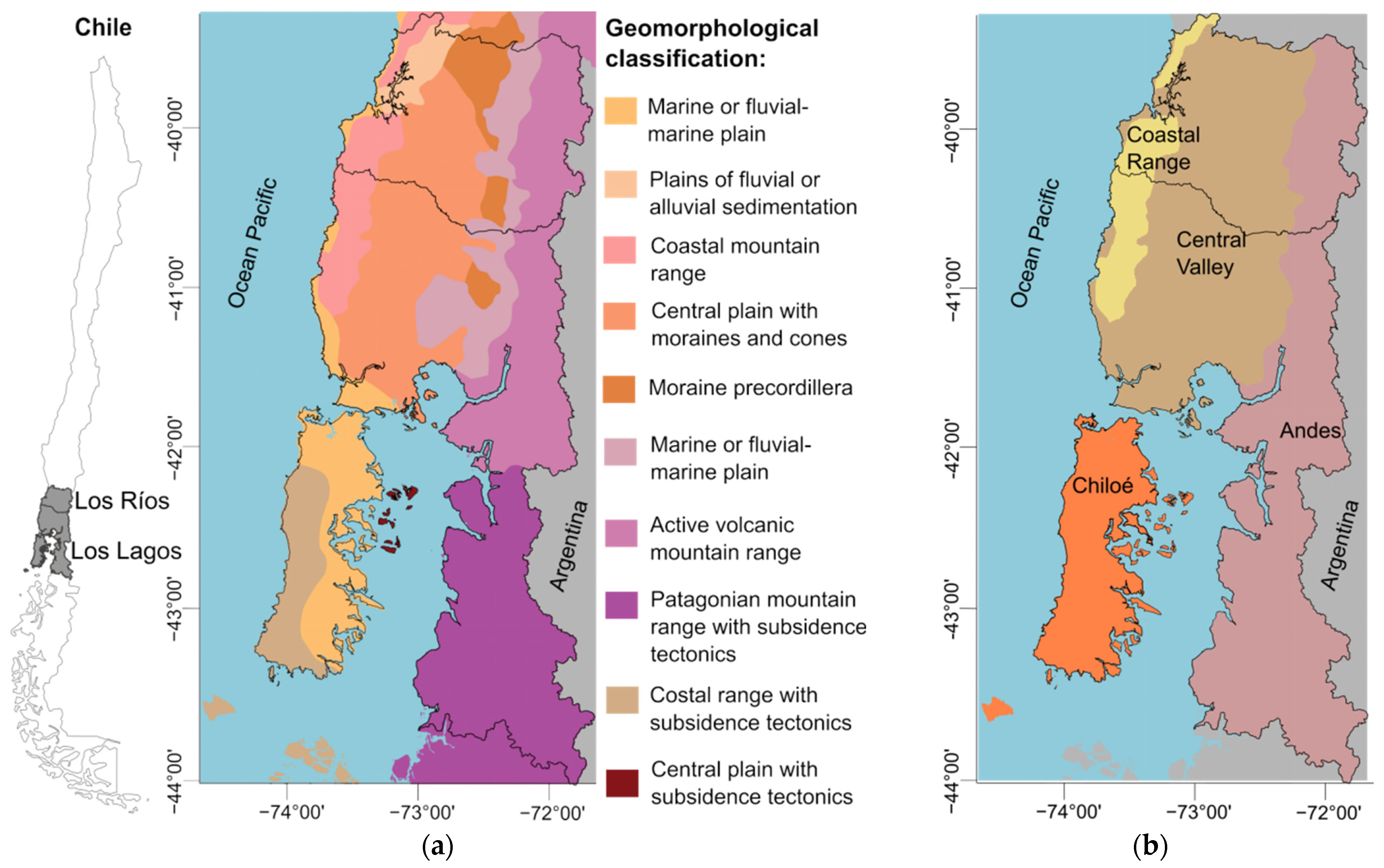 2.1. Geomorphological Classification of the Los Ríos and Los Lagos Regions, Chile