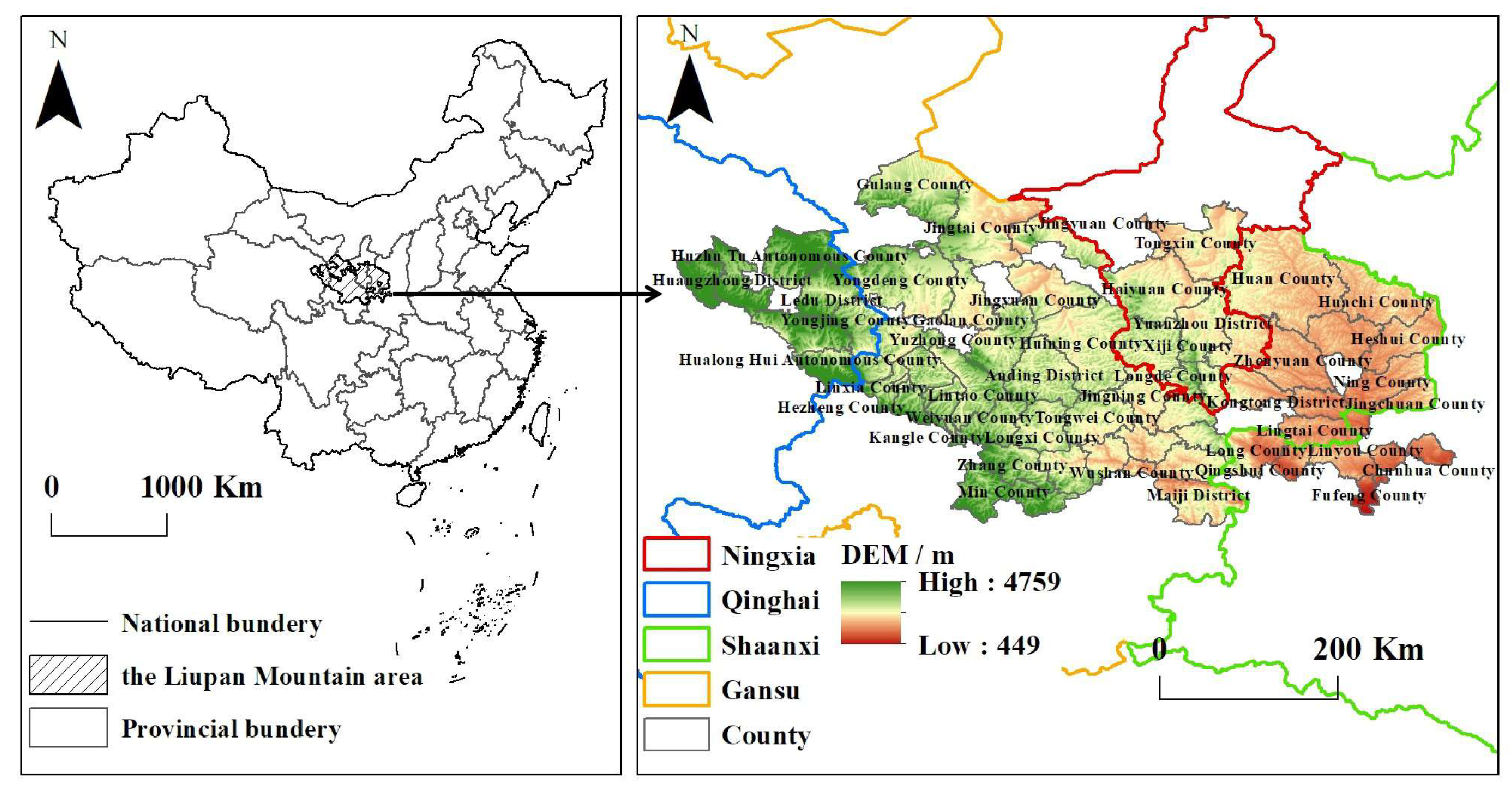 - Yuan, M.; Xie, B.P.; Tian, L.M.; Chen, Y.; Pei, T.T. Spatiotemporal coupling relationship between multifunctional land use and multidimensional relative poverty in the Gansu section of Liupanshan. Arid. Land Geogr. 2025, 48, 1304–1316. [Google Scholar] [CrossRef]