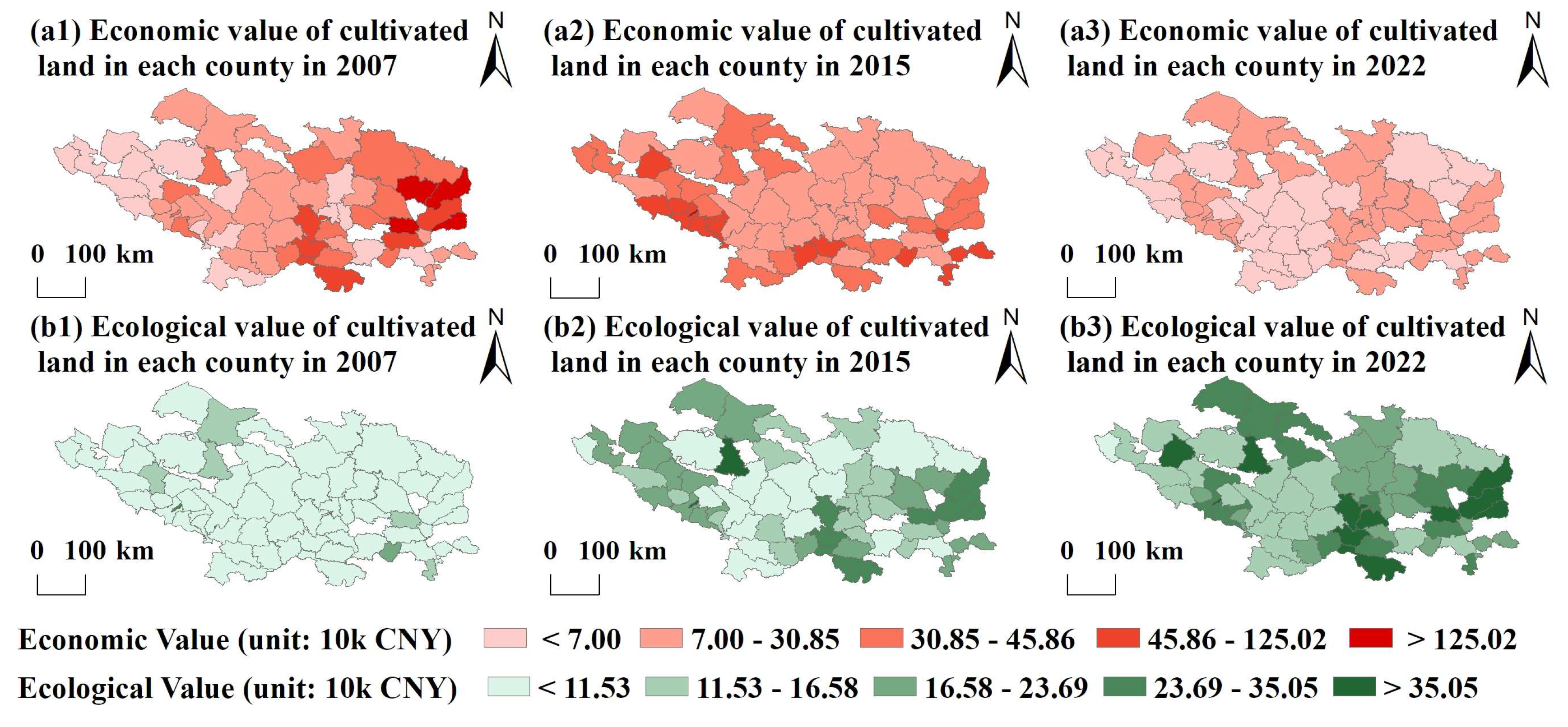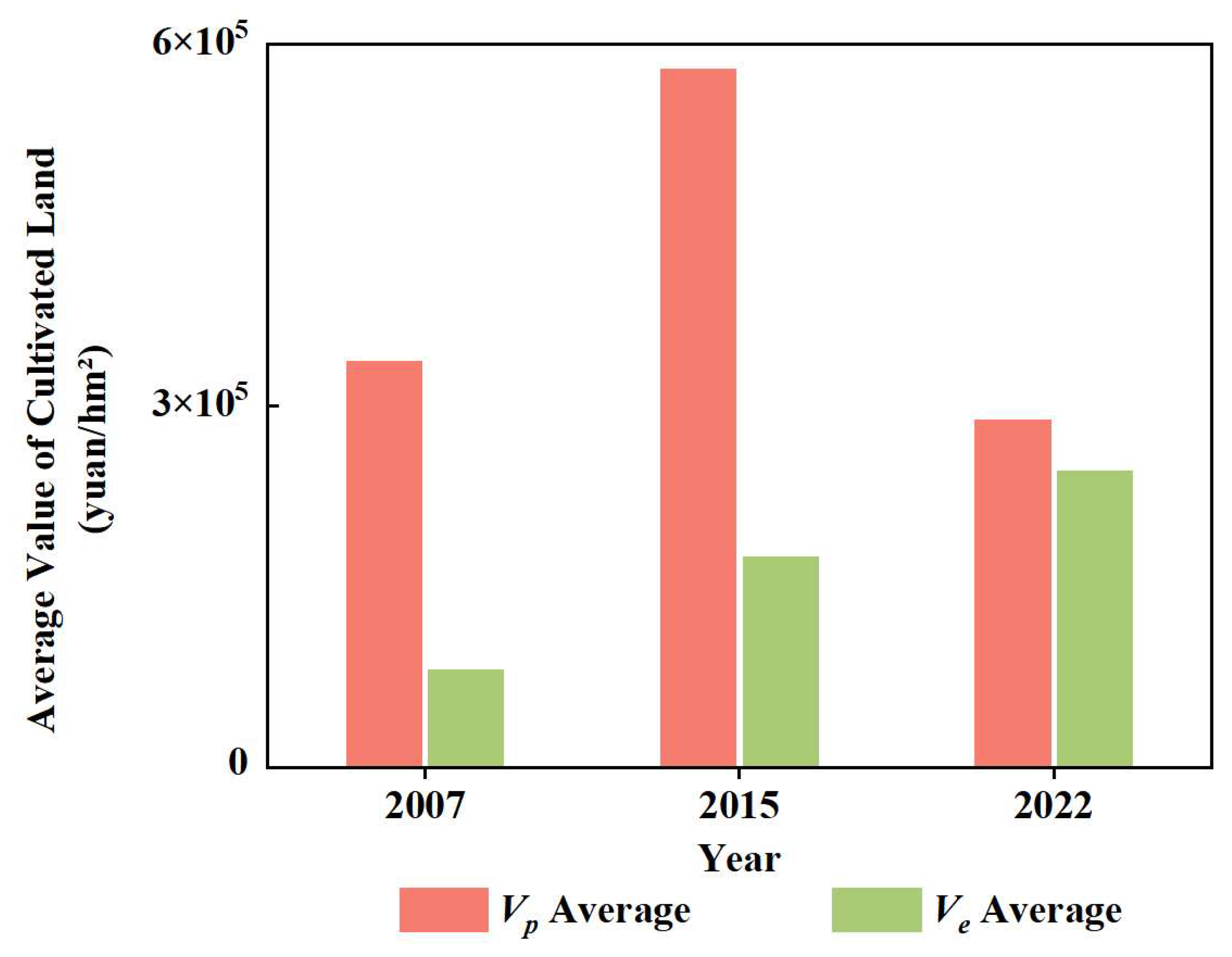 2.4.2. Calculation of the Economic Value of Cultivated Land Resources