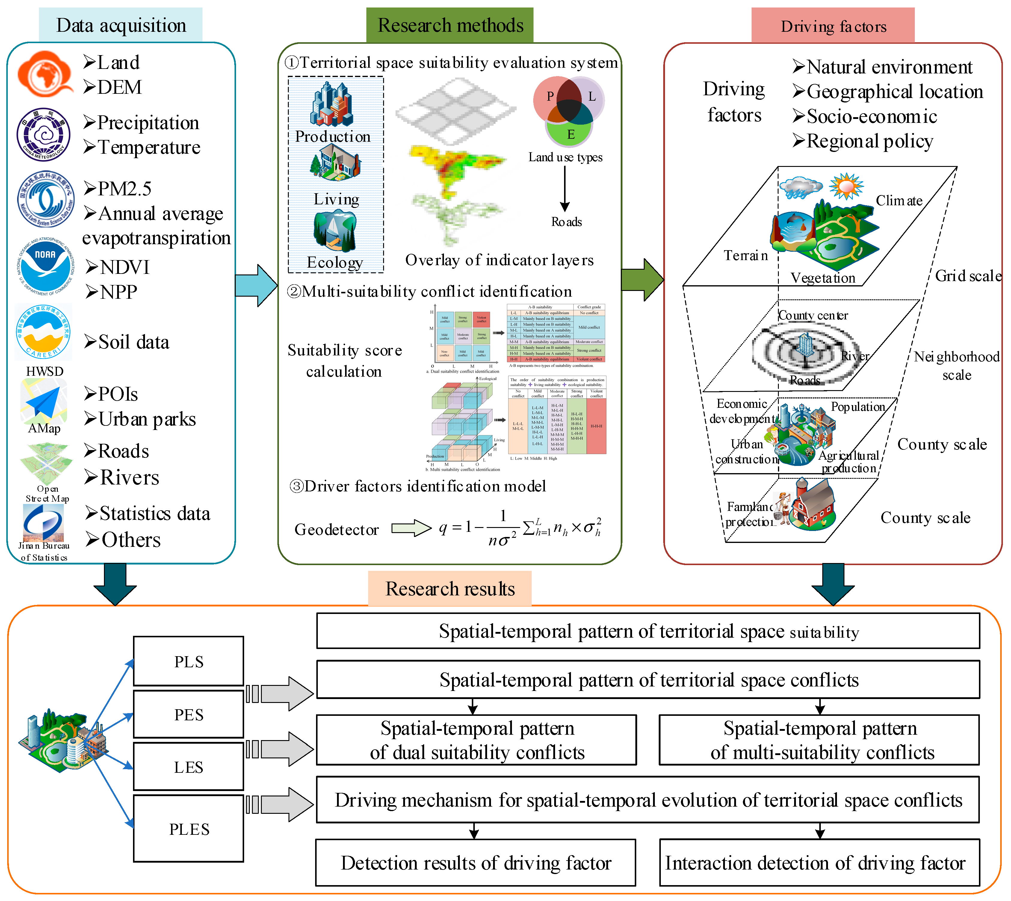 4.3. Driving Mechanism of Spatial–Temporal Evolution of Territorial Space Conflicts