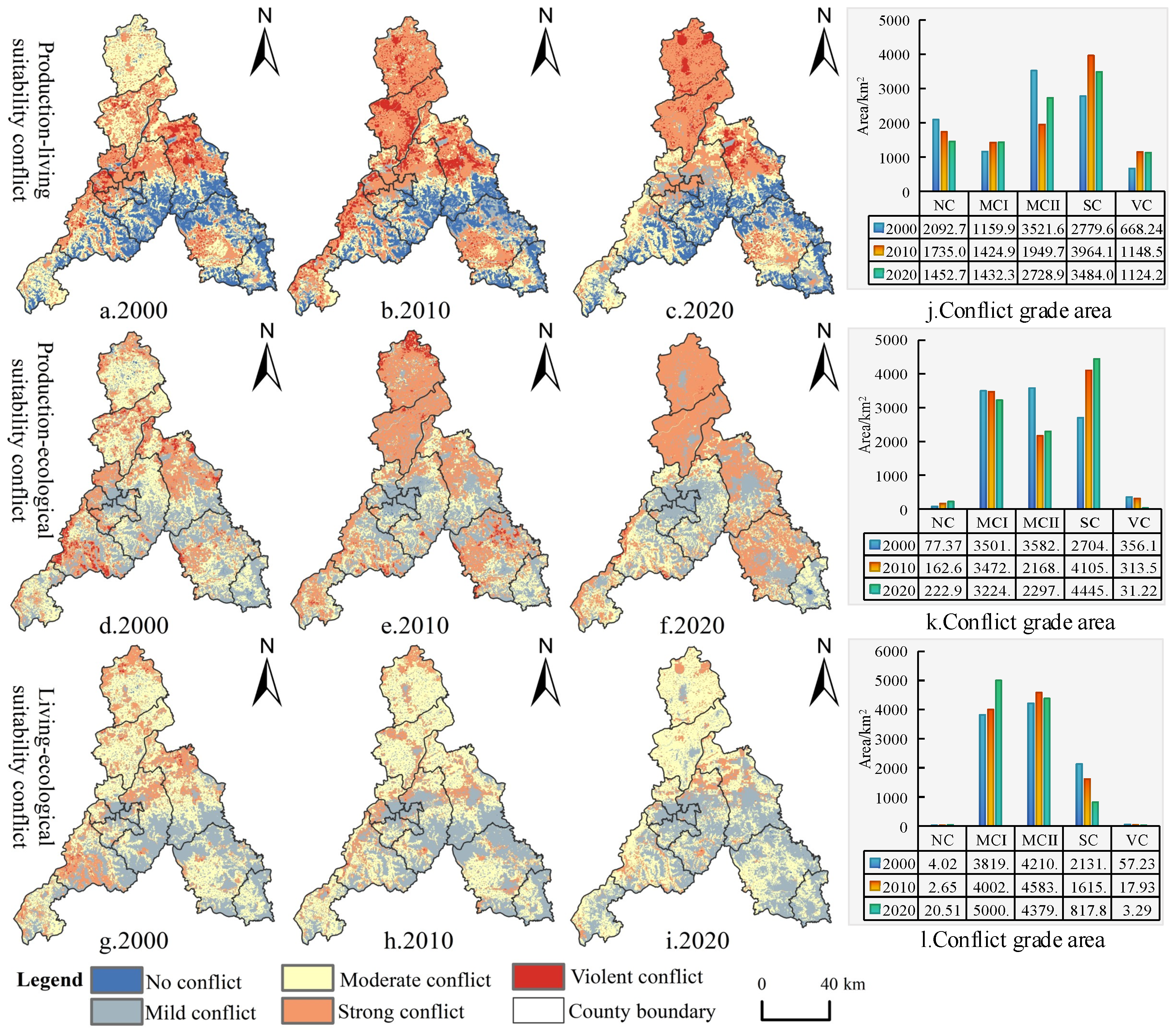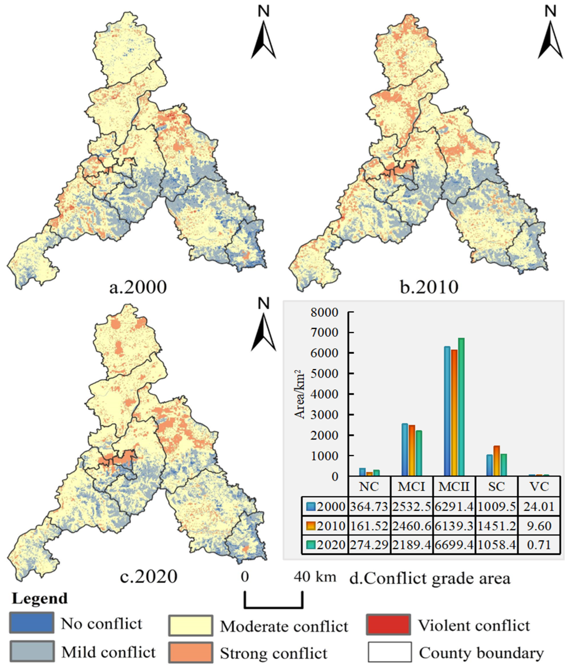 3.3.2. Identification and Diagnosis of Territorial Space Suitability Conflicts