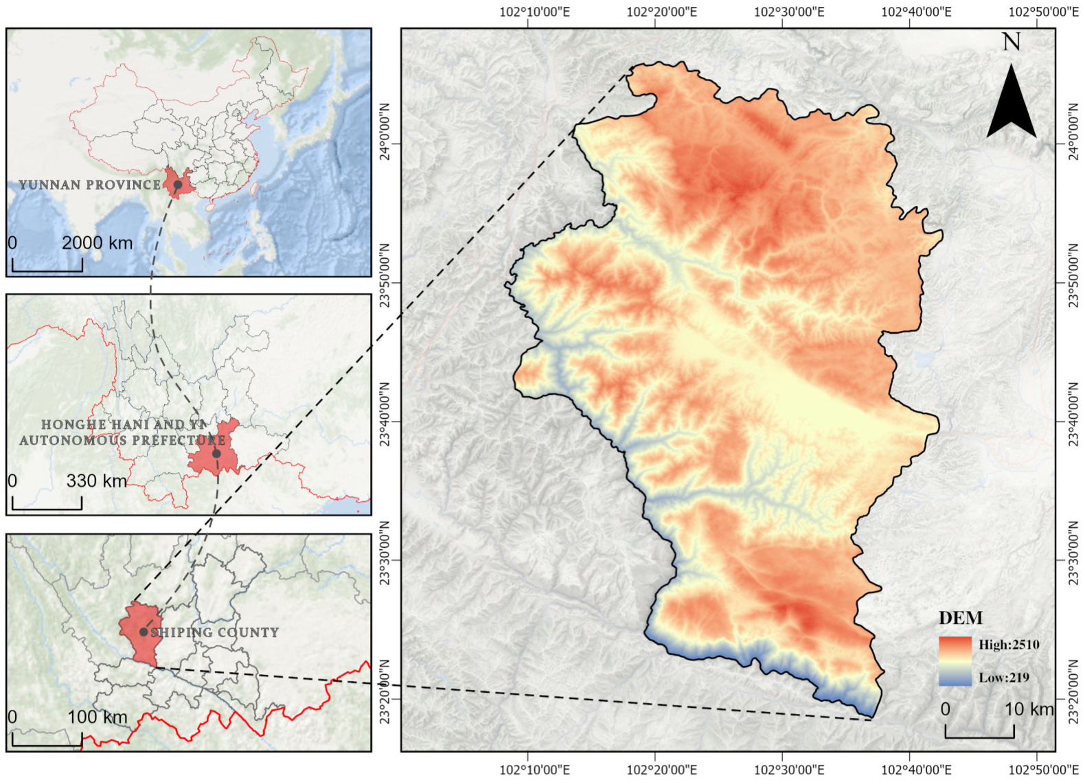 - People’s Government of Honghe Prefecture. Overview of Honghe Prefecture. Available online: https://www.hh.gov.cn/zjhh/hhgk.htm (accessed on 17 January 2026).