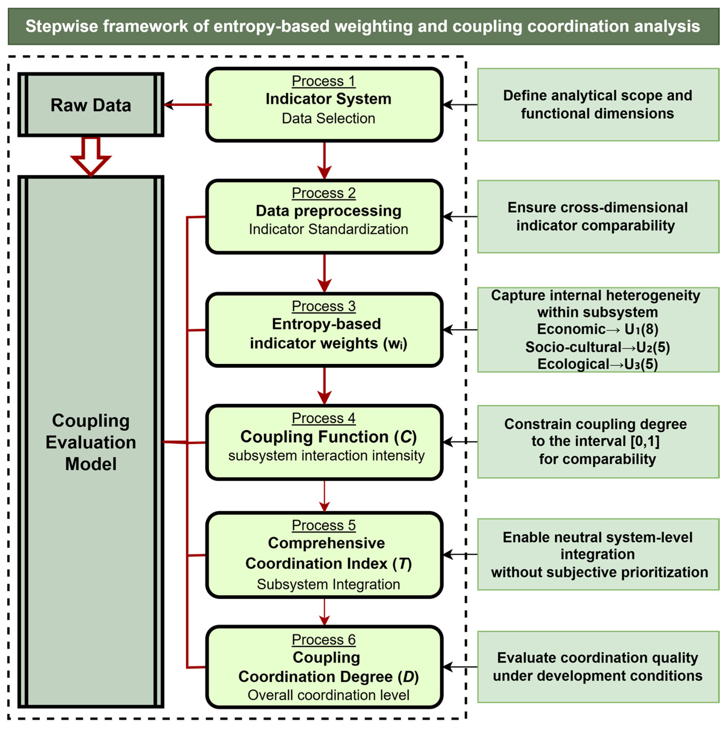 2.4.3. Calculation of the Coupling Coordination Degree (D)