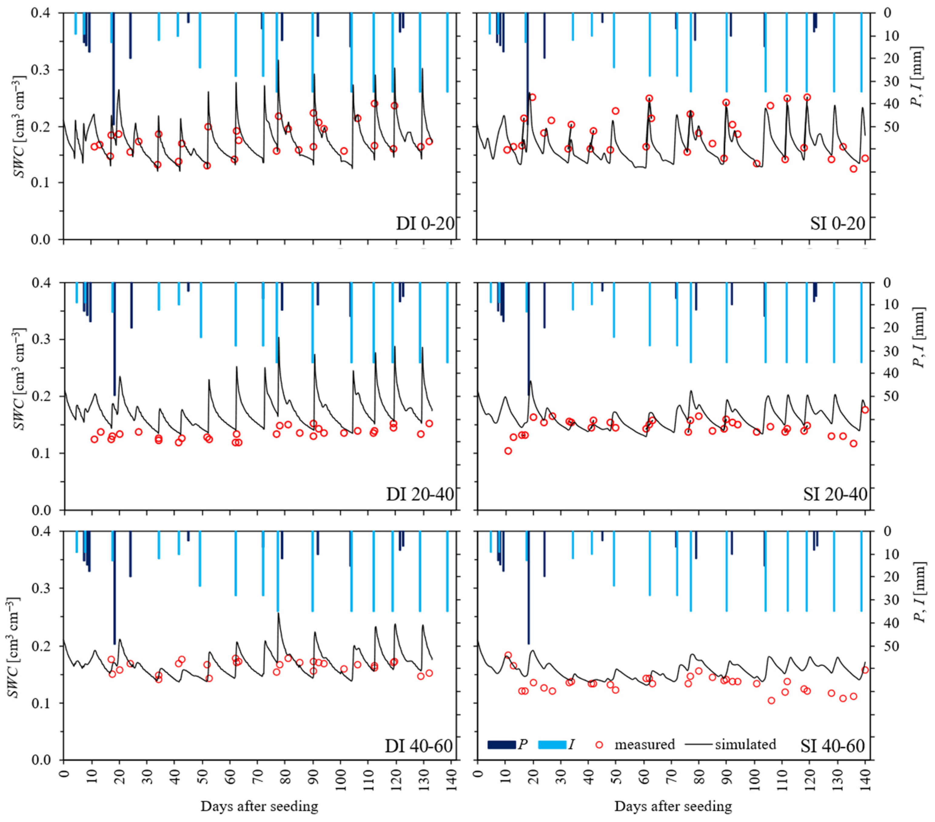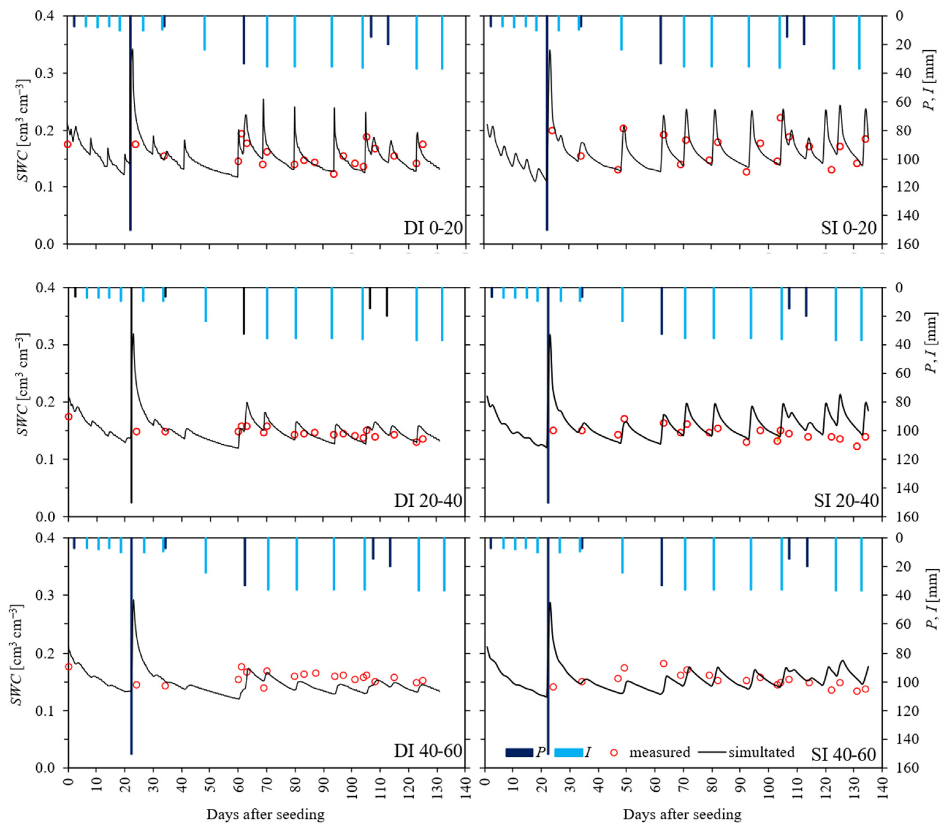 3.1. Simulation of Soil Water Content