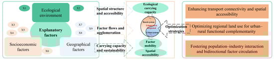 Overall, geographical conditions constitute a relatively stable foundational constraint by shaping spatial patterns and accessibility of regional development. These factors further determine the potential scope and direction of cross-regional factor mobility and agglomeration. Within such geographic constraints, socioeconomic development and land-use patterns restructuring act as core explanatory forces, which directly regulate the intensity of factor flows and the level of URID. Meanwhile, the ecological environment contributes to URID by mediating the balance between agricultural productivity and ecological protection. This balance helps set practical bounds on development intensity and supports long-term sustainability.