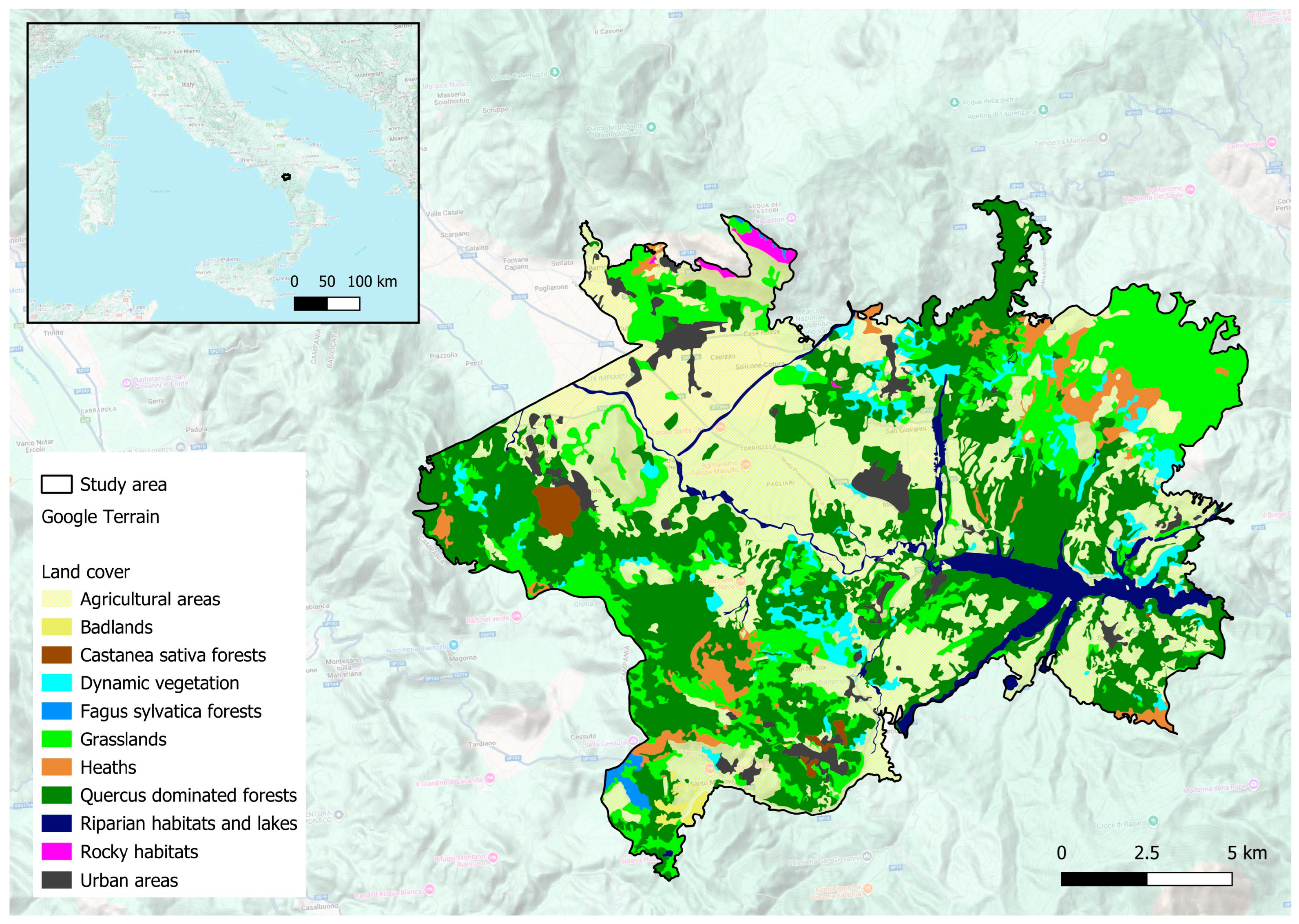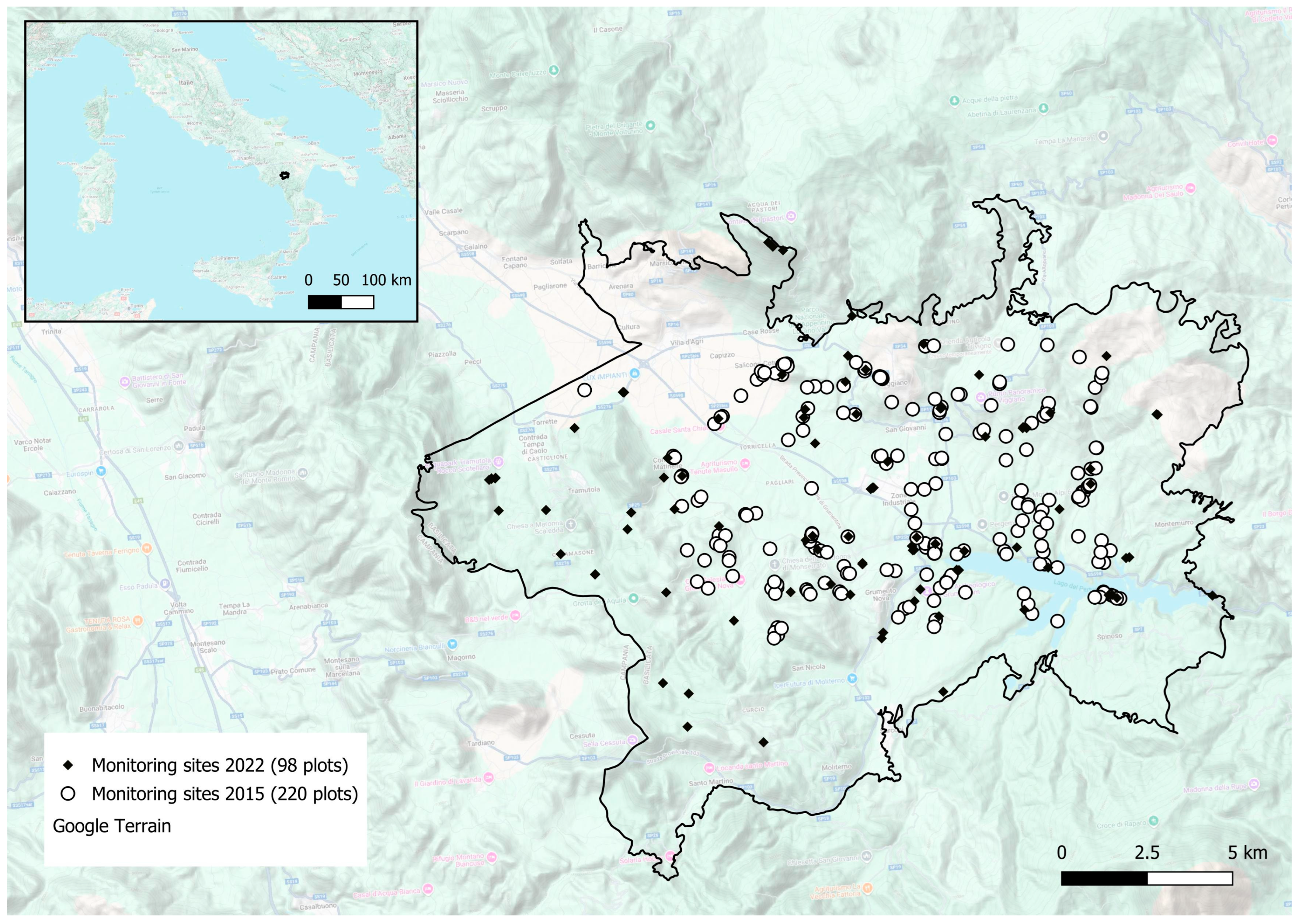 The Agri Valley, located in the Southern Apennines (Basilicata region, Italy) and partially included in the Appennino Lucano—Val d’Agri—Lagonegrese National Park, constitutes one of the most ecologically and socio-economically complex landscapes of the Italian peninsula. This region is characterized by a mosaic of forest ecosystems, shrublands, and grasslands that have long been shaped by traditional agricultural and pastoral practices. However, during the past decades, the area has undergone significant transformations associated with various development dynamics, including industrial activities, infrastructure expansion, and changes in forest and pasture management practices [