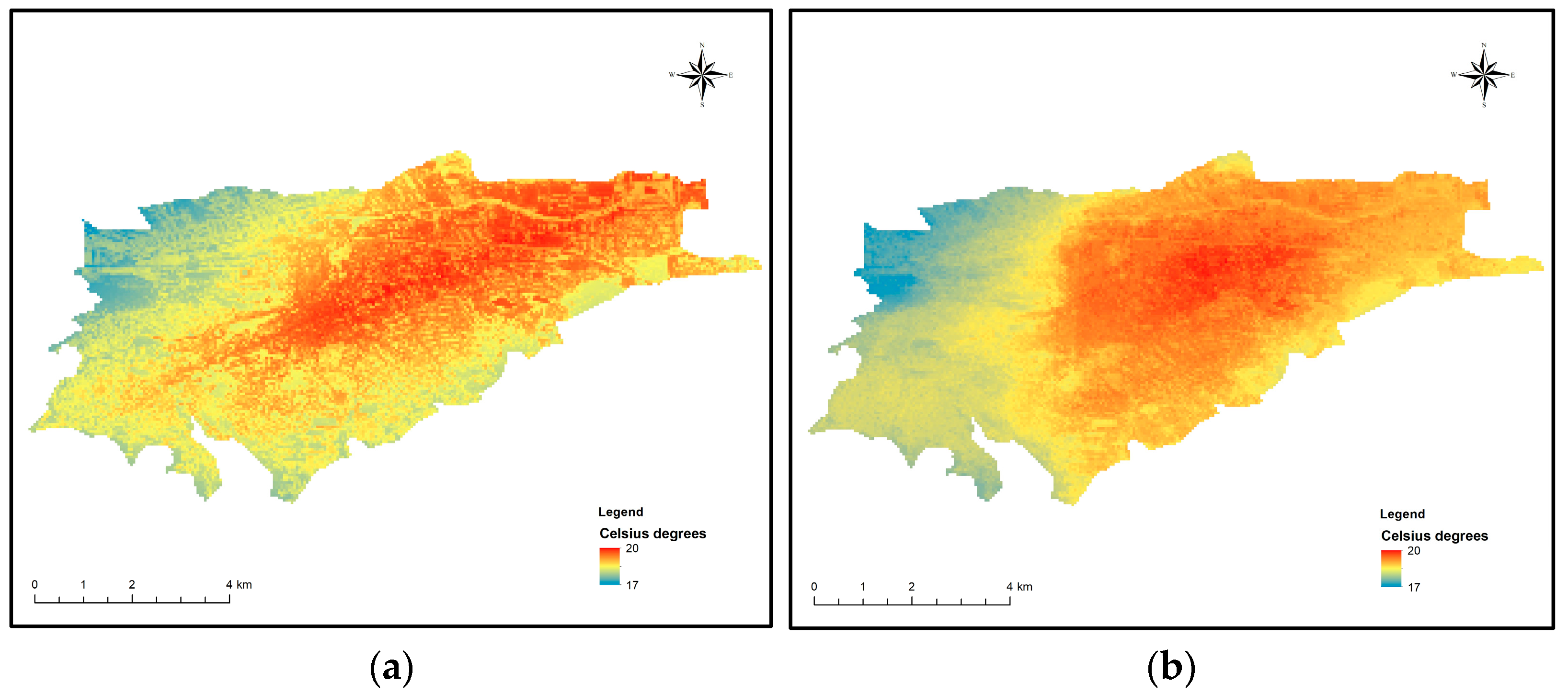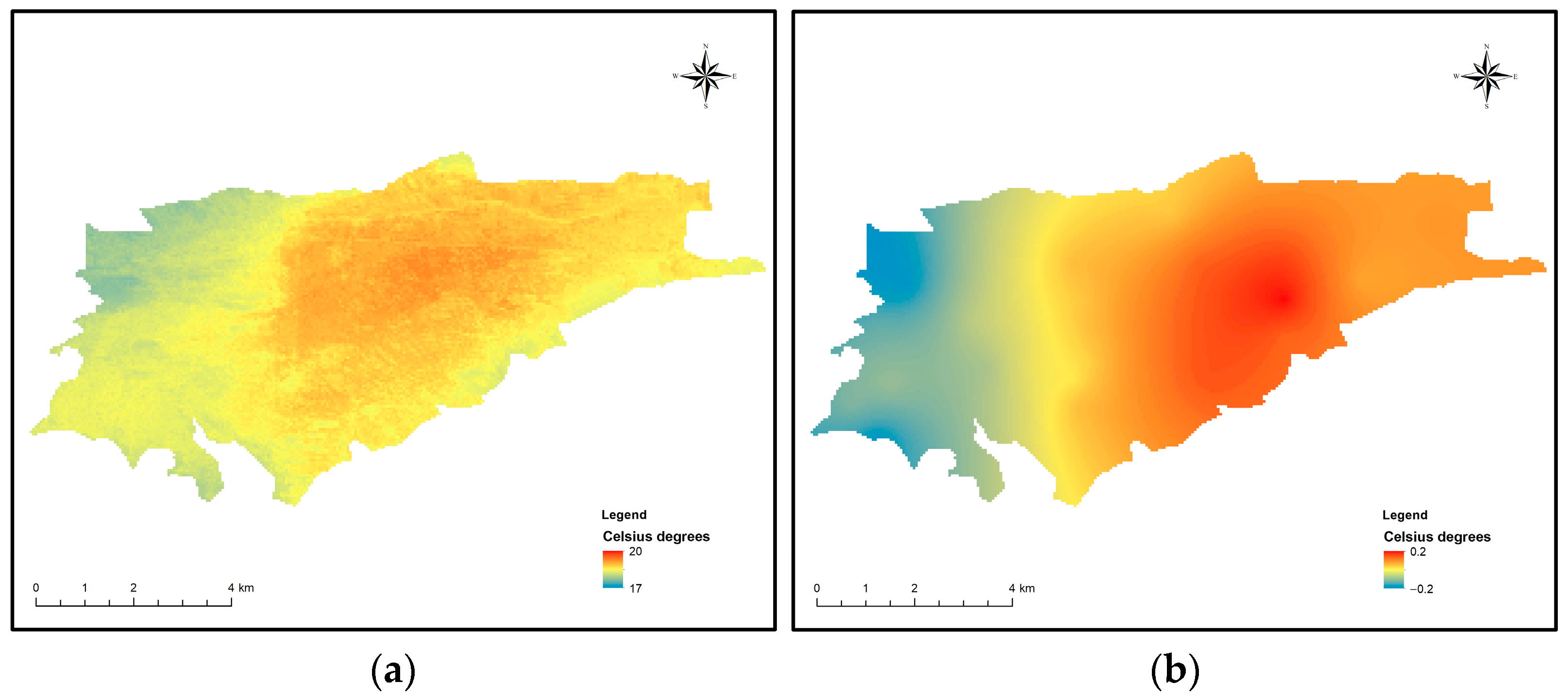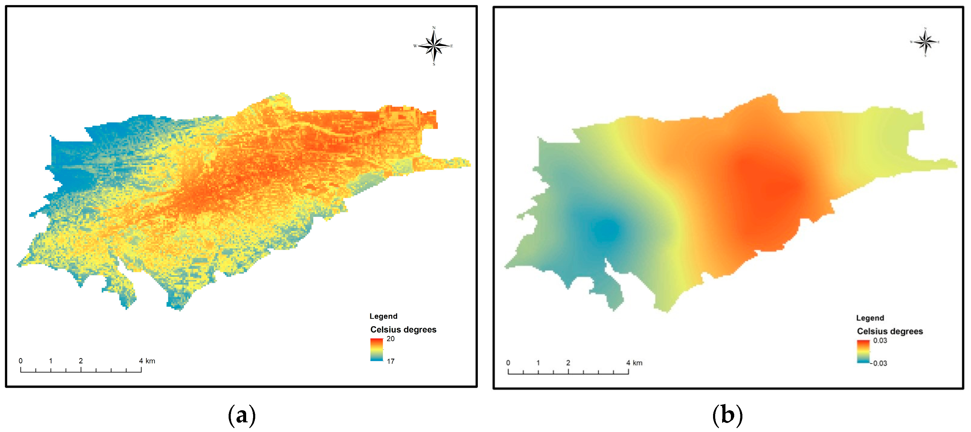 40]. This step accounts for the spatial dependence not captured by the regression models, improving the accuracy of surface temperature predictions. This step ensures that the spatial autocorrelation of the residuals is appropriately modeled, further refining the accuracy of the temperature variation estimates.