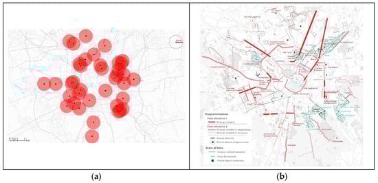 - Open Squares is a project aimed at transforming street intersections and residual spaces into meeting places and local social gatherings. The program’s objectives are: rethinking neighbourhood streets and squares as places of social interaction, vitality, and gathering; increasing the safety of citizens, pedestrians, and cyclists, with particular attention to children, the elderly, and people with disabilities; repurposing existing public spaces through low-cost, highly participatory urban furnishing and decoration projects; fostering collaboration between citizens and public administration, promoting the shared management of common goods (Figure 2a).