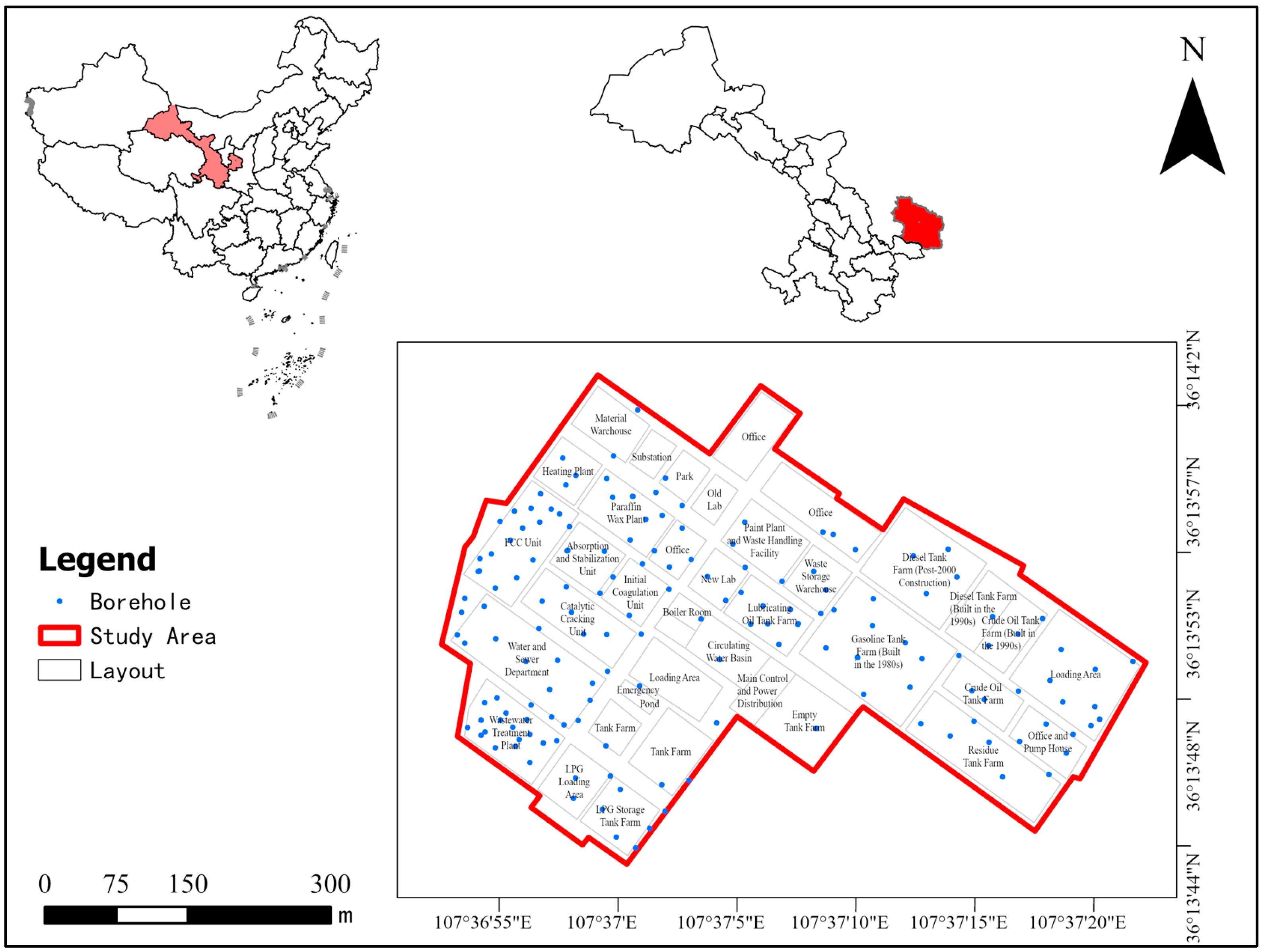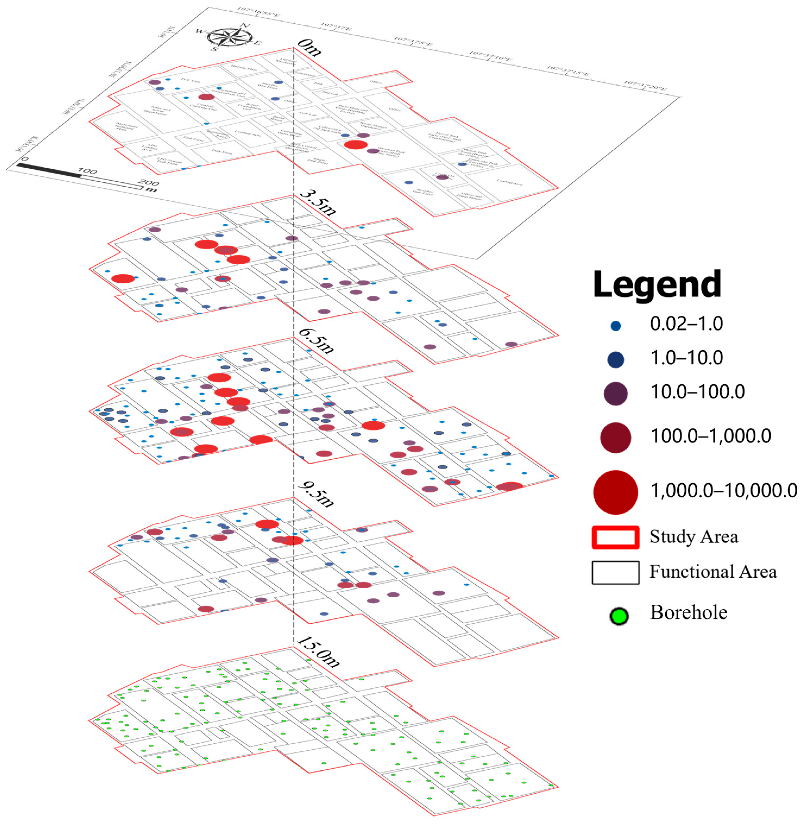 - Li, T. Study on Distribution and Migration Characteristics of Typical Pollutant in Petroleum Refining Sites. Master’s Thesis, China University of Petroleum, Dongying, China, 2020; pp. 24–53. [Google Scholar]