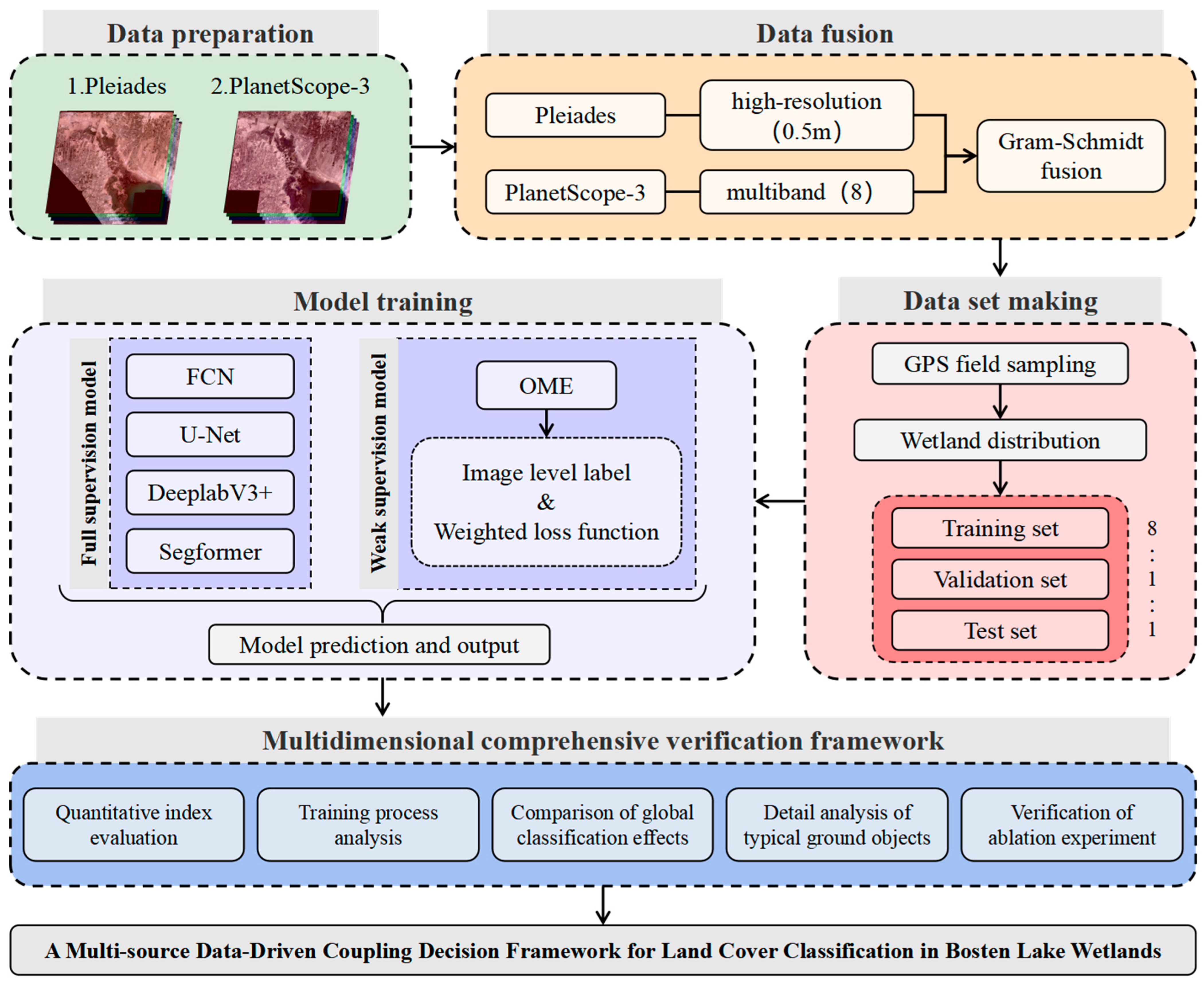 | Pleiades& PlanetScope-3 | 91.65 | 83.52 | 90.34 | 87.77 | 90.45 | 88.48 | ||