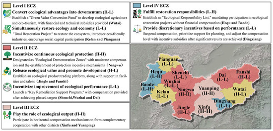 CEI, the basin was classified into ecology-dominated zones (ecological advancement with human retreat), human-dominated zones (human advancement with ecological retreat), and relatively balanced zones. Upstream areas (