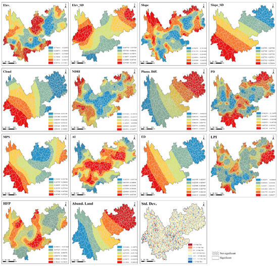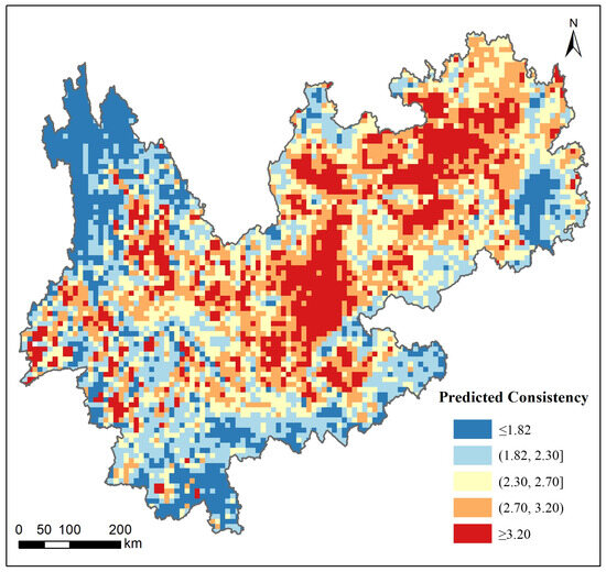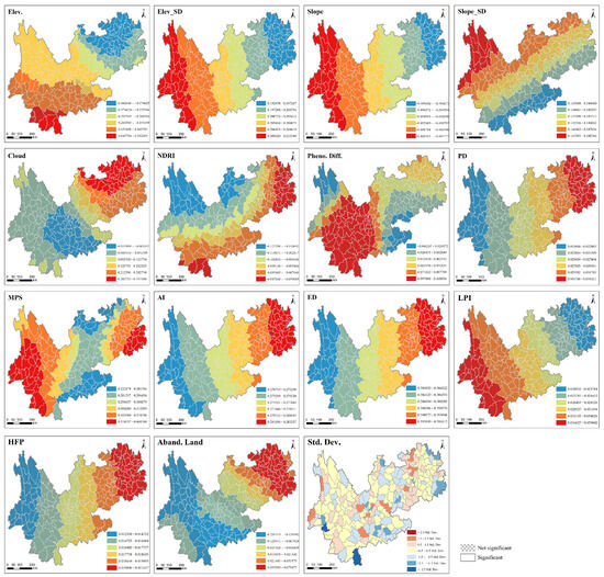 CEI), spatial autocorrelation analyses (global and local Moran’s I, LISA, and Getis–Ord Gi*), and GeoDetector to assess spatial heterogeneity, classify coupling types, and identify key human–ecosystem. The results reveal marked spatial variation in coordination levels, which are higher in the central–western mountains and lower in the southeastern plains (global Moran’s I = 0.7344,