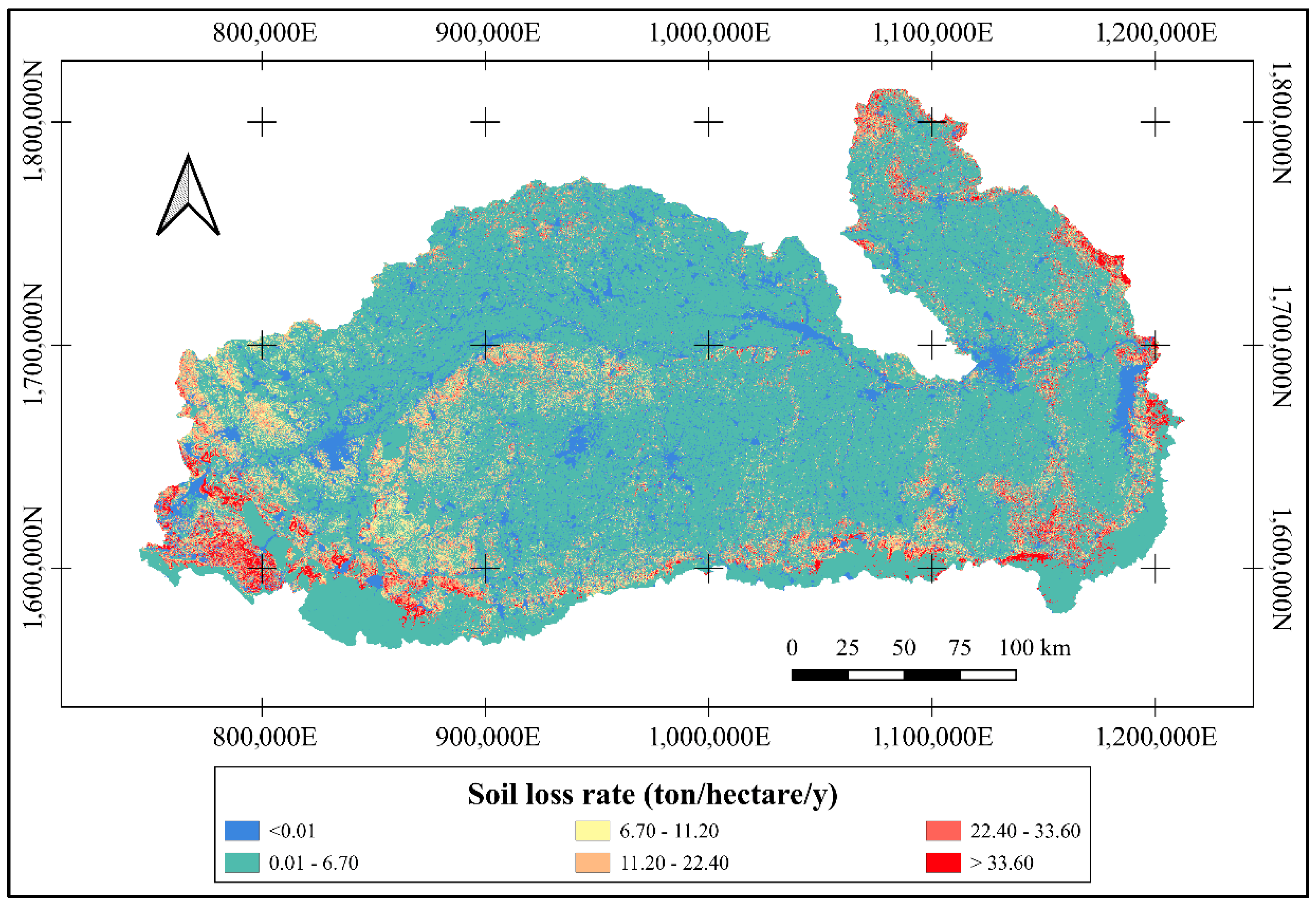 | Category | Soil Loss Rate (t ha−1 y−1) | Area | |