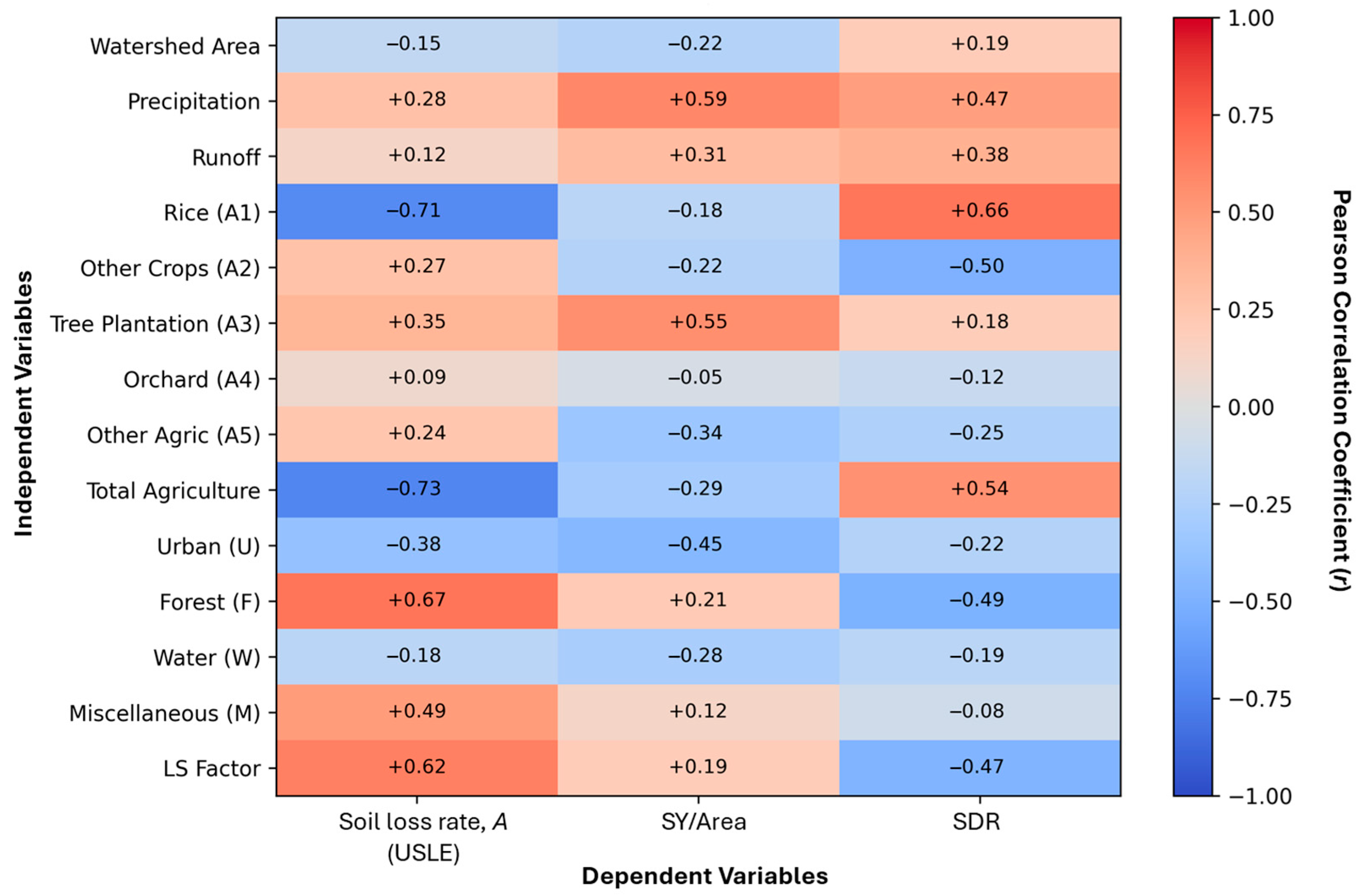 | Independent Variable | Soil Loss Rate, A (USLE) | SY/Area | SDR |