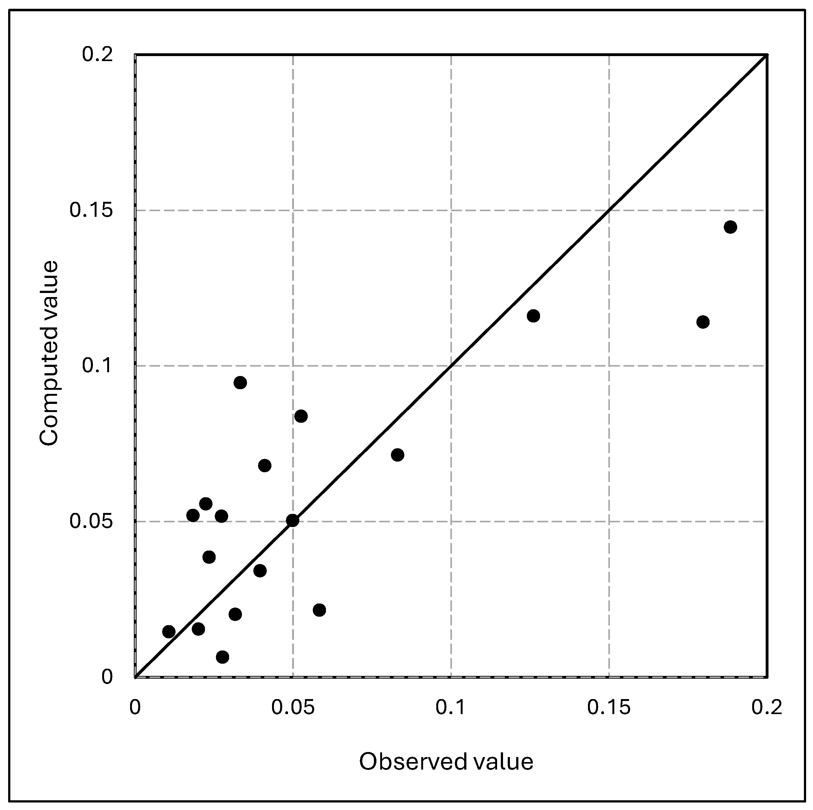 - Pearson correlation coefficient (r) between observed and predicted values.