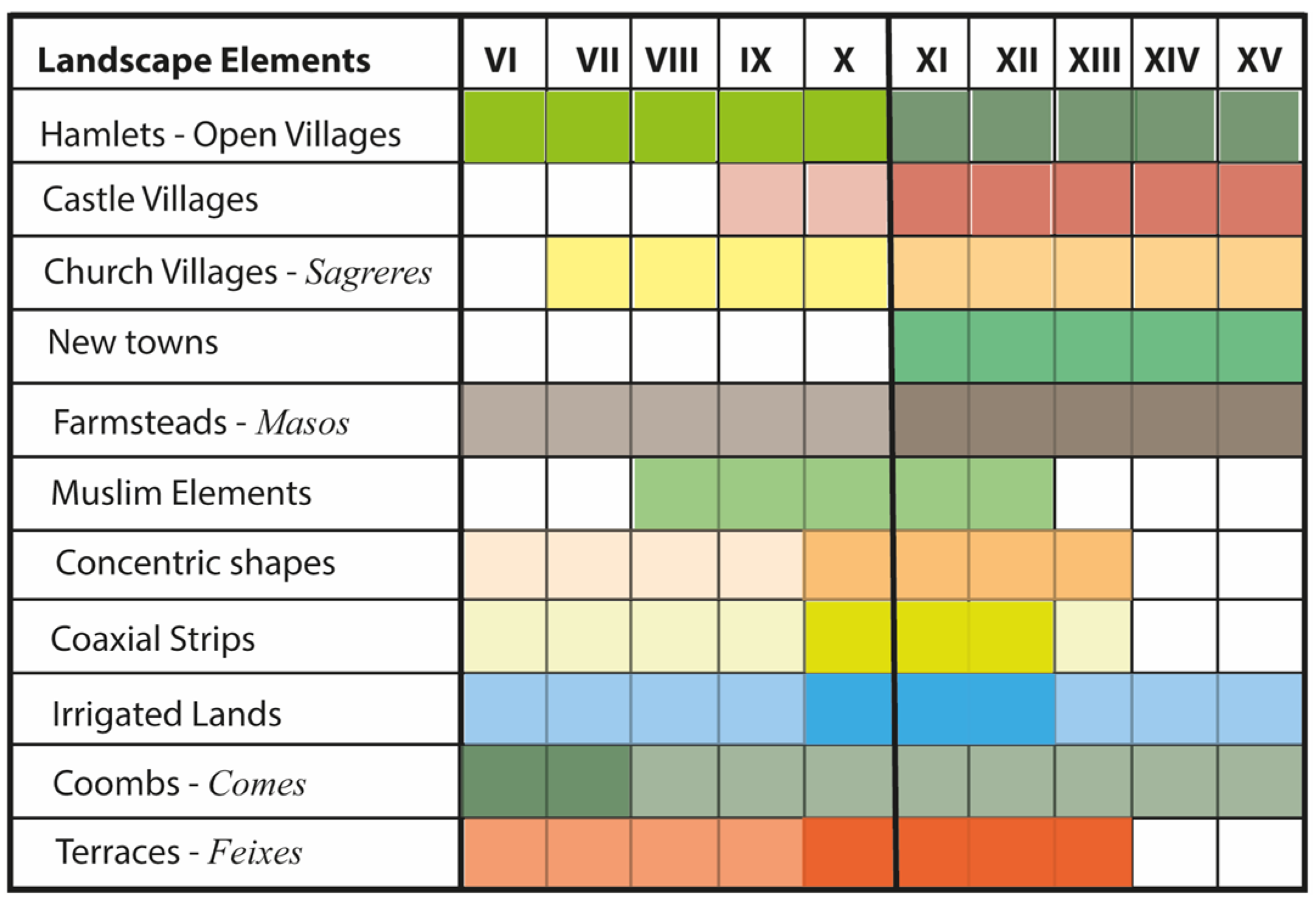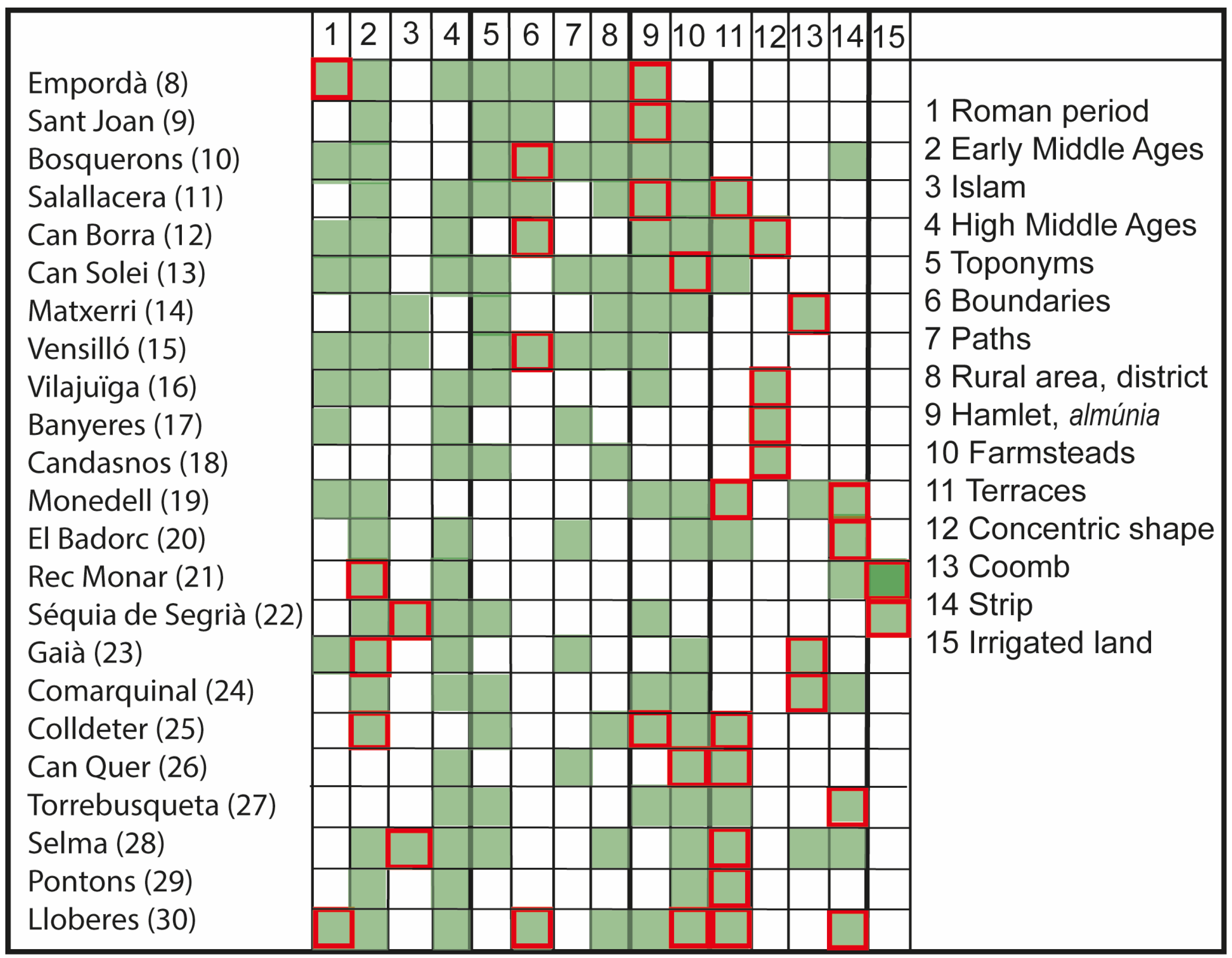 Figure 4). In 801, this river became the frontier between the lands conquered for the Carolingian Empire by Charlemagne’s son and those subject to the Emirate of Córdoba. This frontier had an impact on the landscape, as reflected in the characteristic features of the medieval —and even modern— villages in these places. East of the river, a significant proportion of High Medieval villages emerged around a church, within the thirty-pace area protected by the Church (